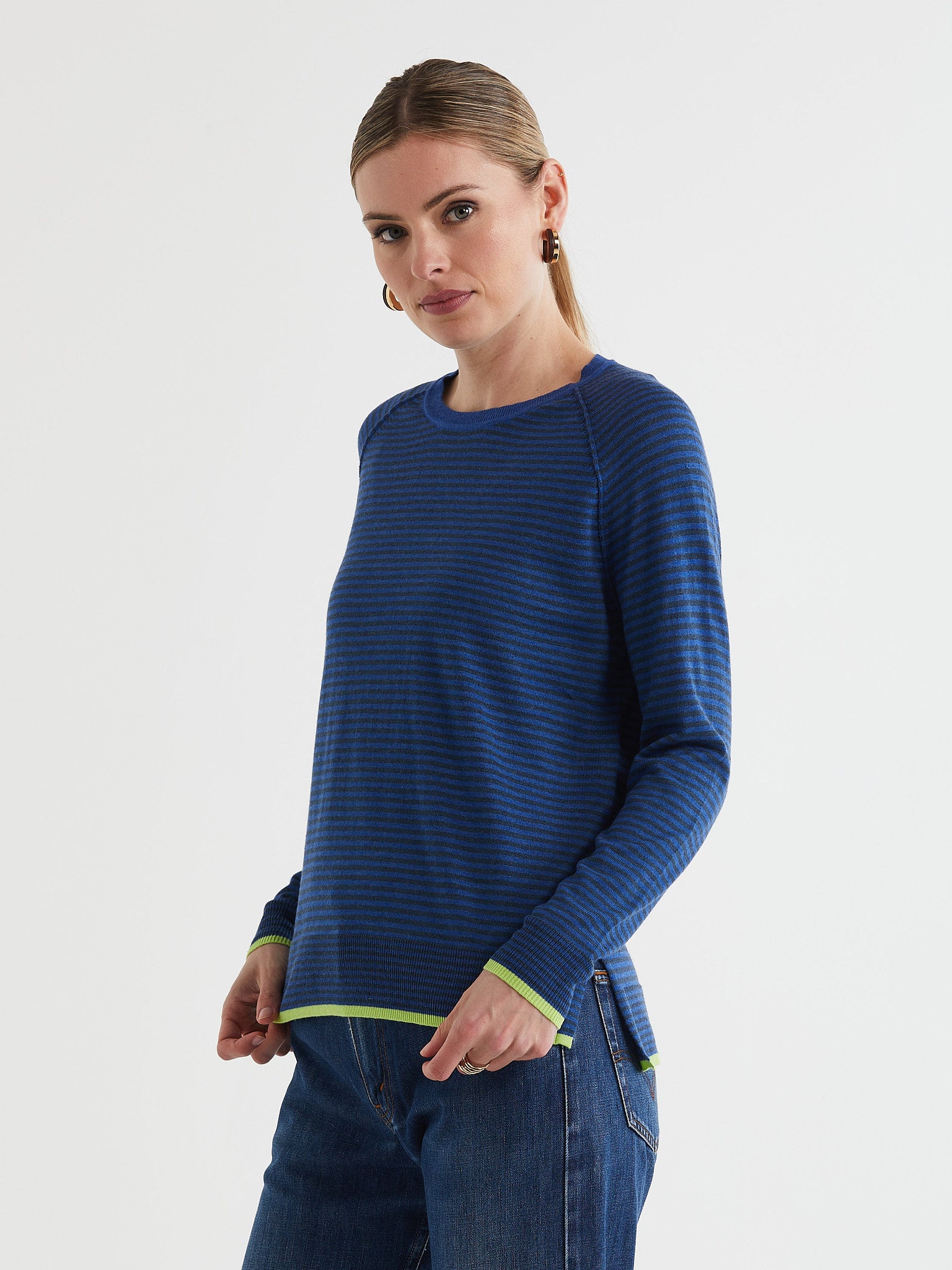 Elevate your everyday style with the LD+Co Stripe Crew. This classic crewneck gets a modern update with fine contrast stripes and bold trim, adding a fresh touch to any outfit. Designed for both comfort and versatility, it's the perfect go-to layer for effortless, all-season styling.