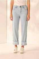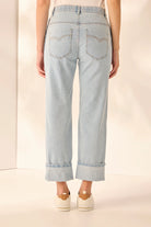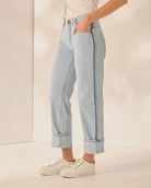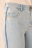Cropped and relaxed, this style is best described as a new essential. Crafted in super stretchy denim this wide-leg jean showcases contrast-heavy topstitch and features topstitch on the back pockets. Wear it with sneakers for a casual look or dress it up with sandals.
