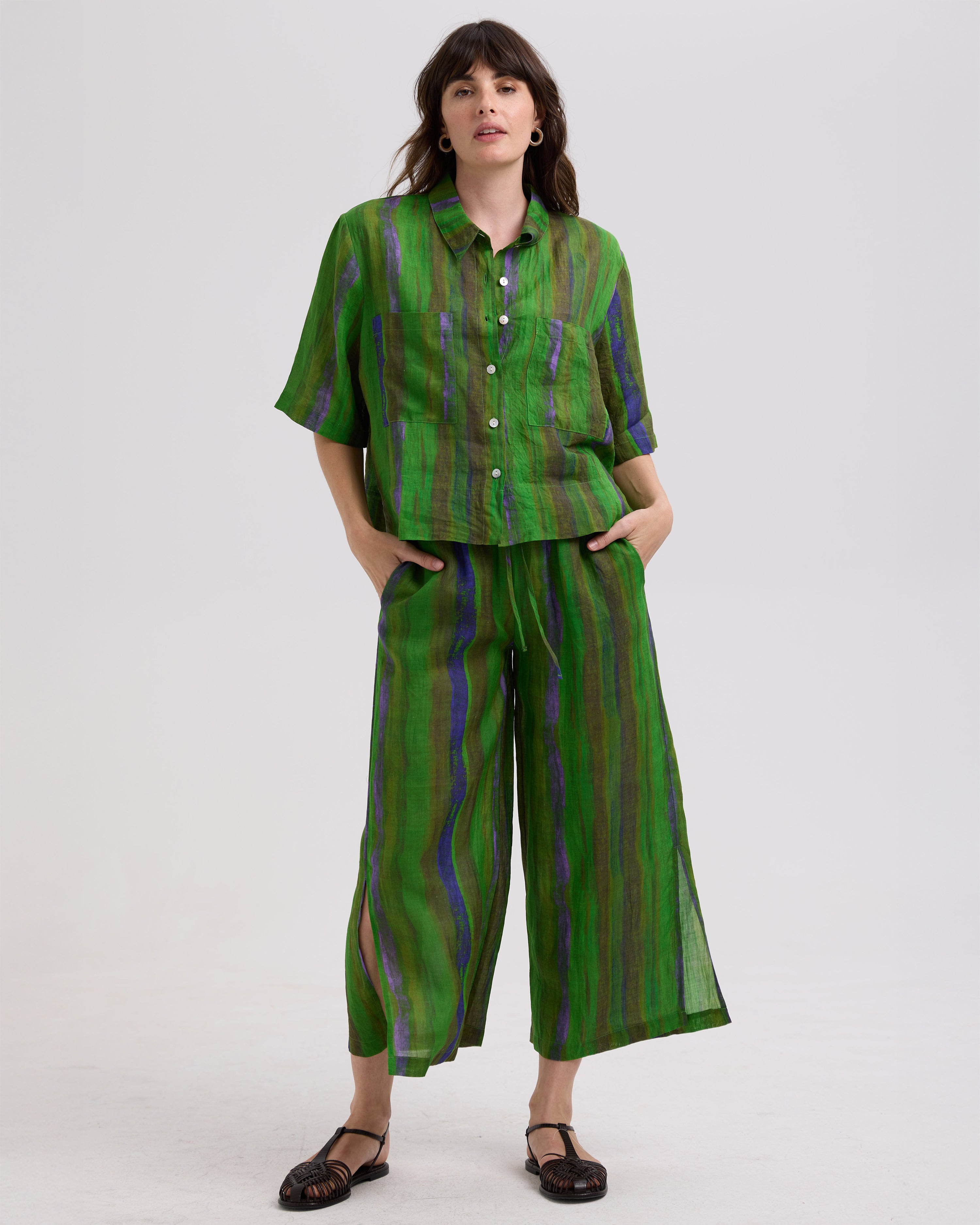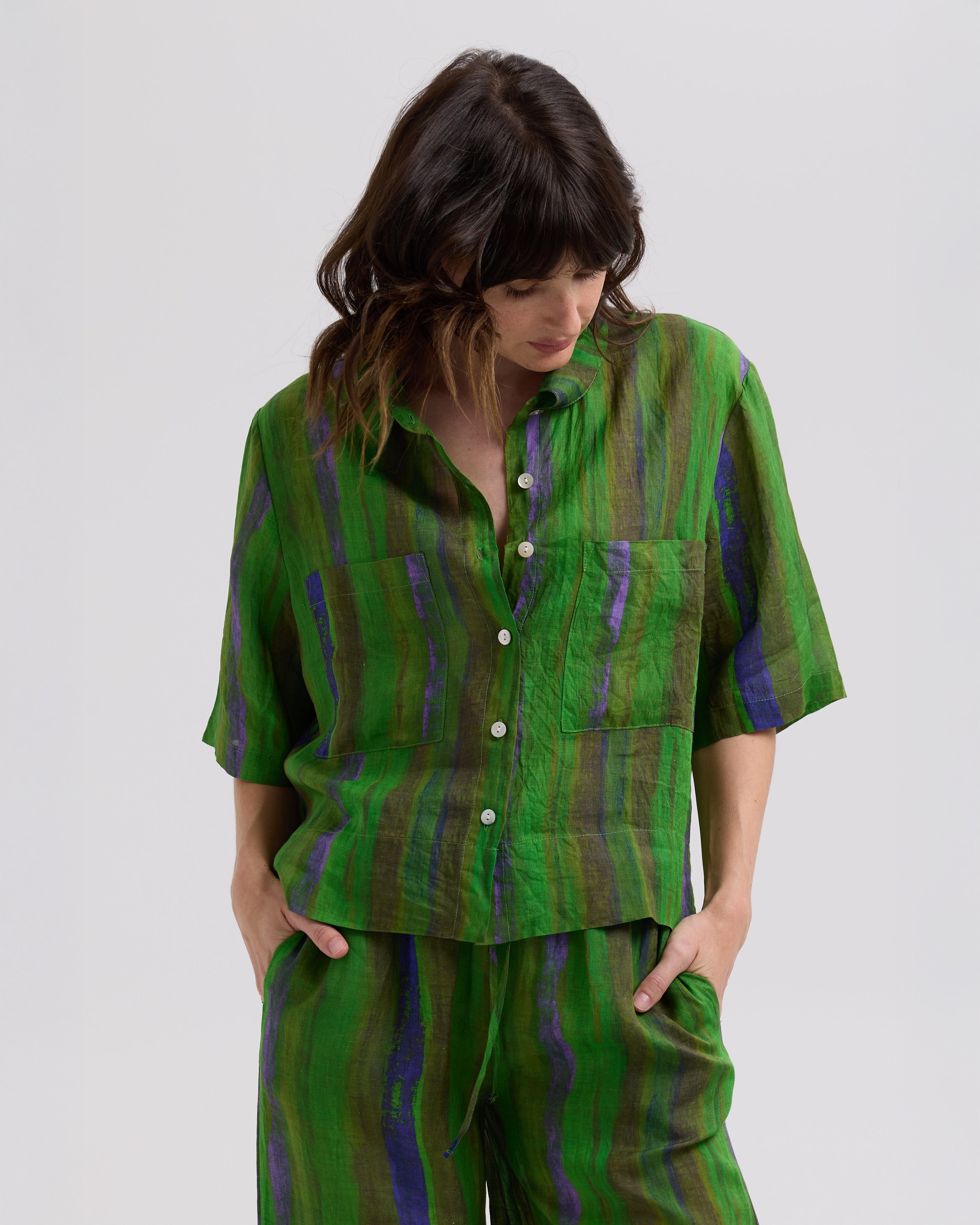 Bold and breathable linen shirt in a unique painted finish - relaxed, stylish, and perfect for effortless dressing.