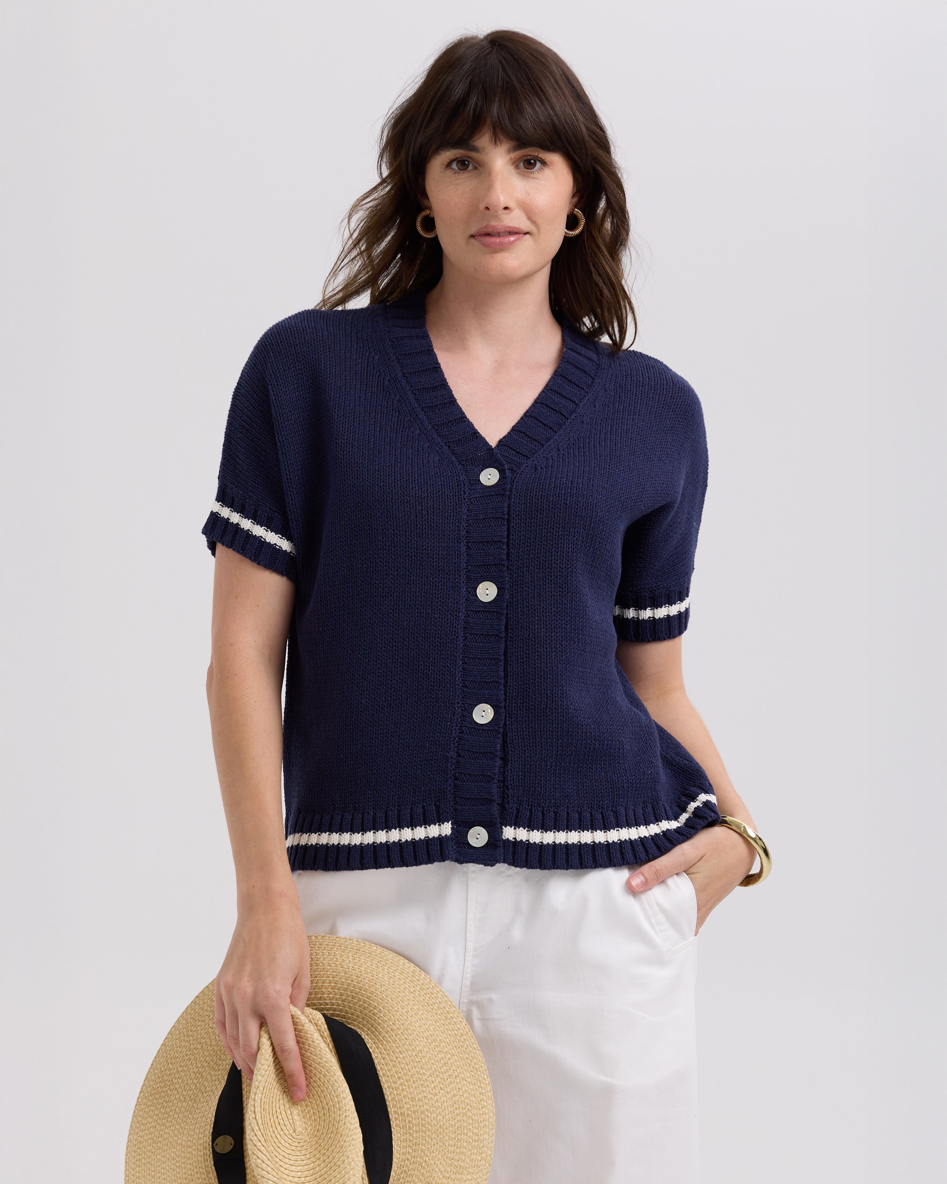 LD + Co Textured S/S Cardi | Marine