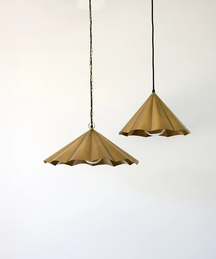 Made from industrial sheet iron with an elegant, structured design, this Scalloped Pendant adds sophistication to any space. Perfect over a kitchen island, as a standalone piece, or grouped to form a striking visual cluster. Available in two sizes.