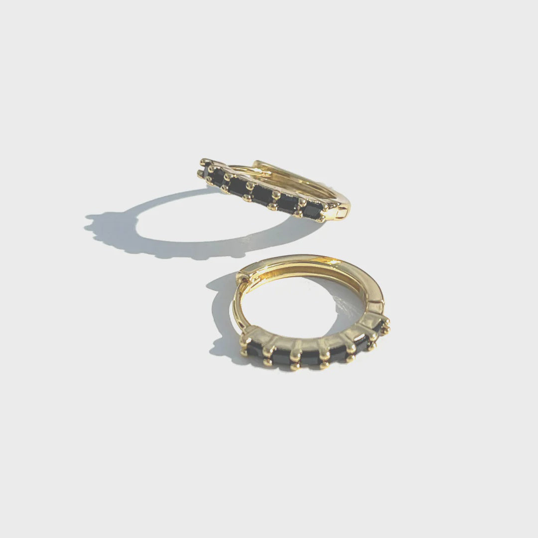These stunning Gold Baguette Sleepers with Black Zirconia are super classic and easy to wear everyday.