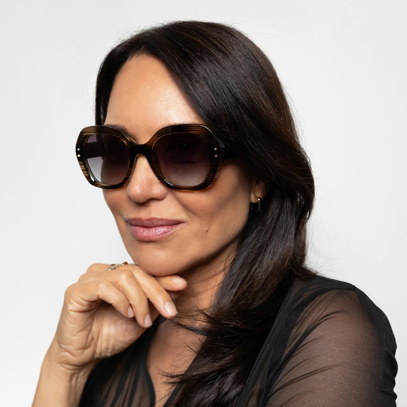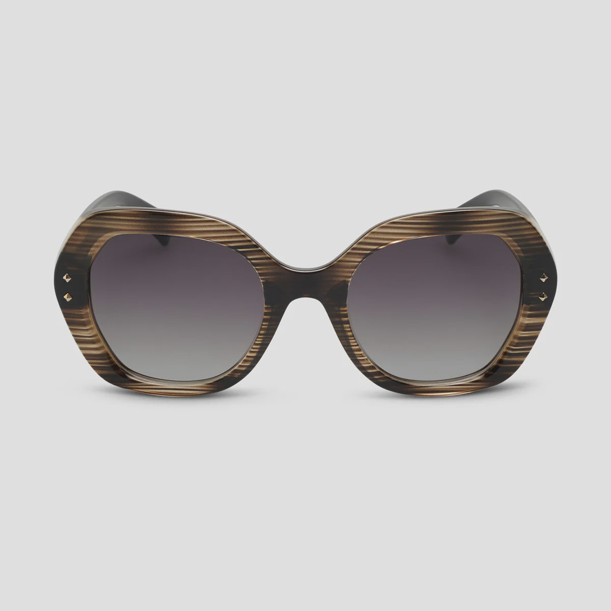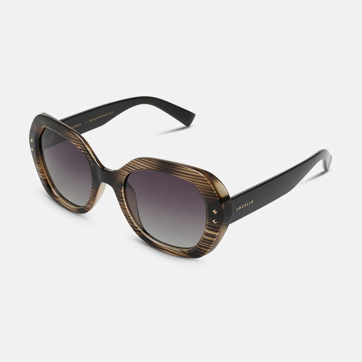 Kamilla, reimagined in cool grey geo stripes and deep olive arms, is made for the days when subtle just won’t do. Her rounded silhouette adds softness, while the pattern gives a nod to the bold. With polarised smoke lenses offering 100% UV protection, she’s ready for lazy mornings at the markets or spontaneous weekend escapes. Kamilla blends structure with soul and is perfectly balanced, effortlessly you.