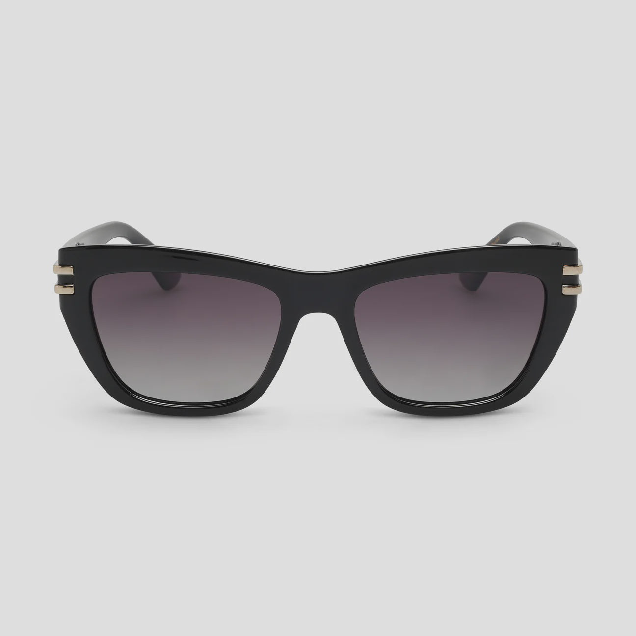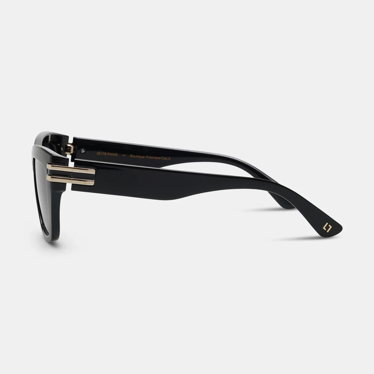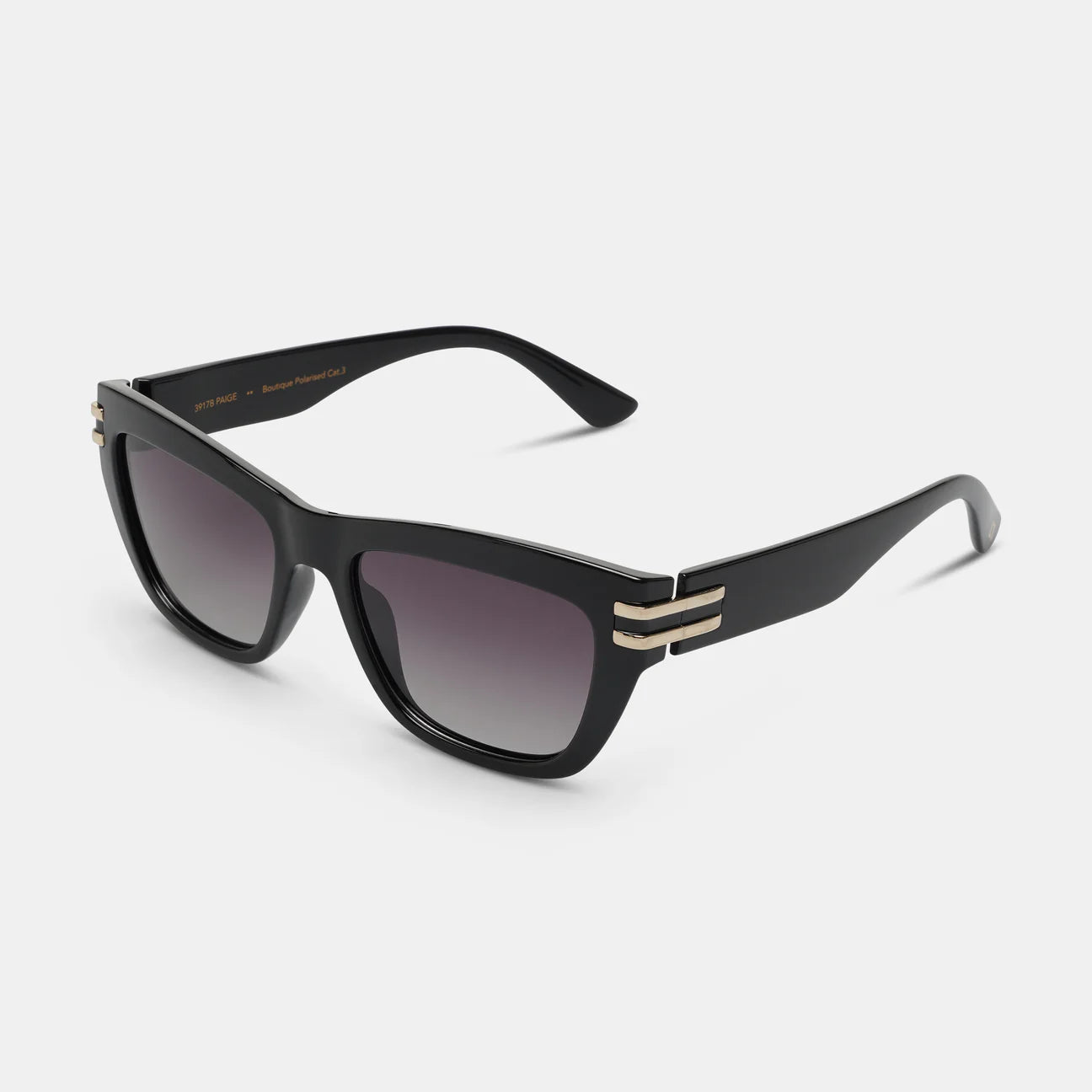 Experience the captivating allure of Paige sunglasses, where functionality effortlessly blends comfort with beauty. Their modern black square frames, adorned with an eye-catching gold stripe on the arm, strike the perfect balance between bold and refined. Whether you're sipping cocktails on a rooftop or enjoying a casual day in town, these polarised smoke lenses with 100% UV protection will keep you looking fabulous and shaded, so you can relax and enjoy the moment.