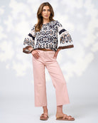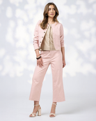 Straight leg pant in a stretch-cotton twill with front panel seams and back waist darts for a flattering fit, featuring embroidery details on the pockets.