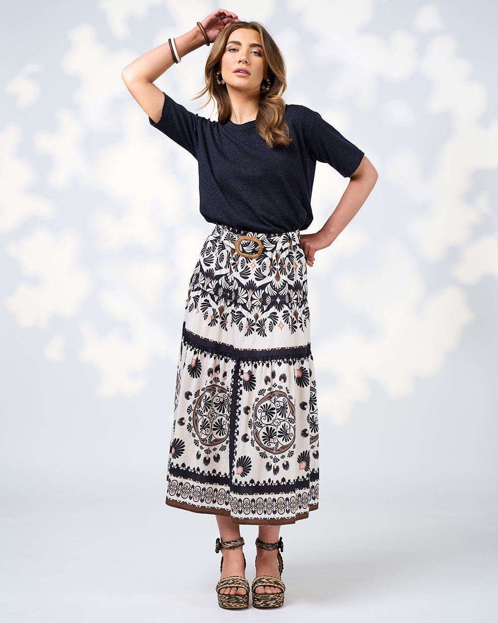 Easy fitting tee in a metallic cotton cashmere, to add shimmer and elevate your look. Features side splits and a stepped hem.