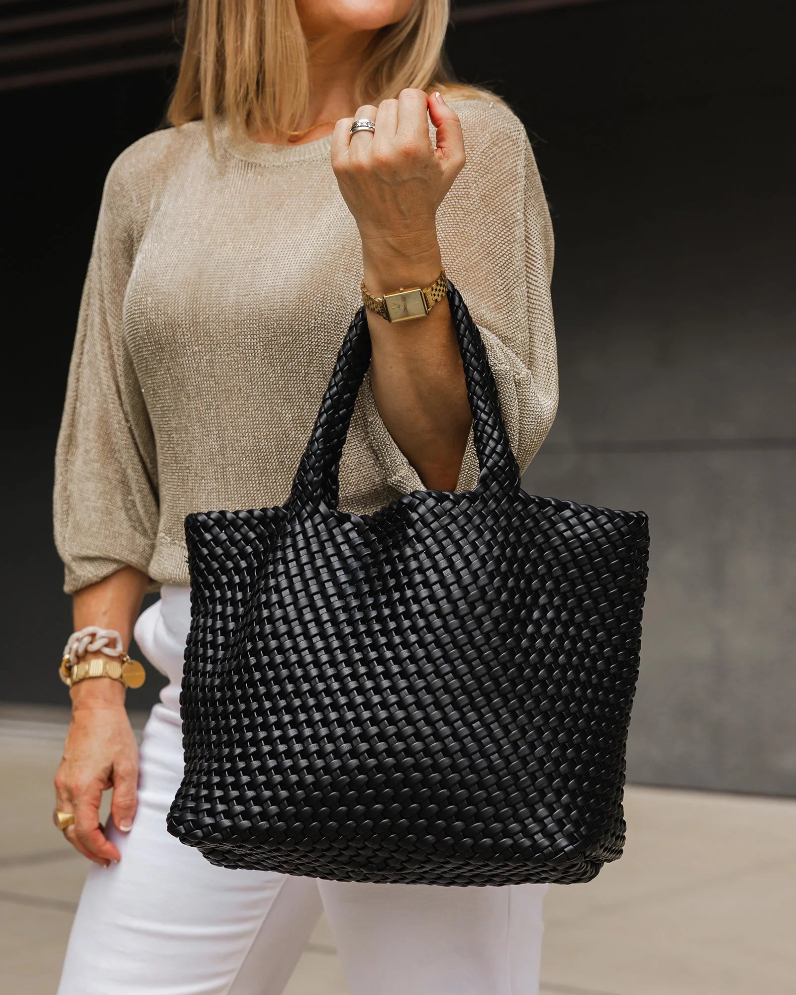 The Louenhide Cruiser Woven Tote Bag in vegan leather  will add the perfect touch of texture to your everyday look. Simply carry by the comfortable top handles or attach the adjustable crossbody strap for a hands-free moment. Elevate your style and carry your essentials with the Cruiser Tote Bag.