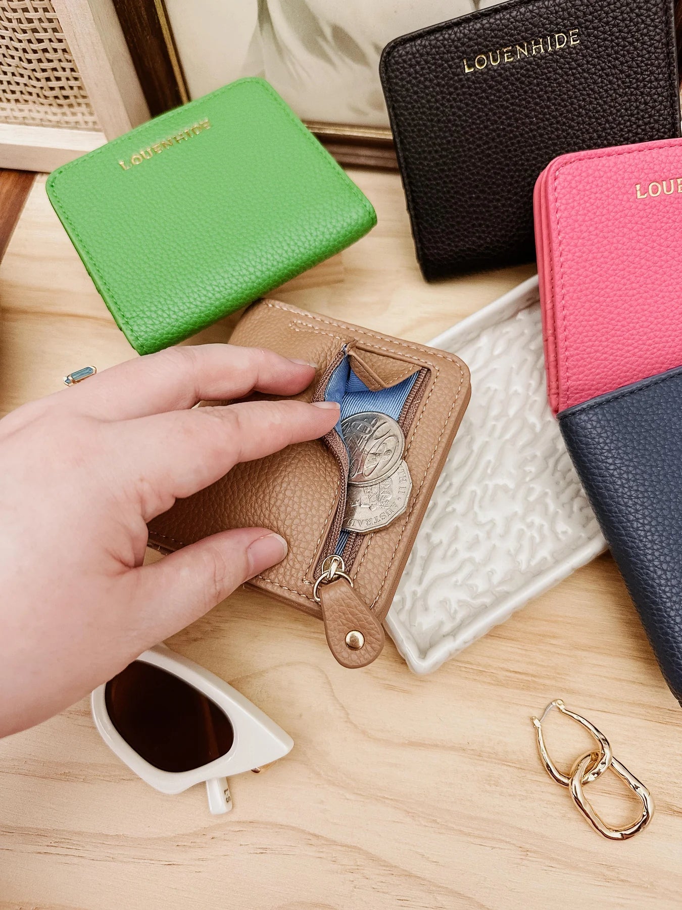 The Louenhide Lily Wallet is a must-have for the minimalist seeking a sleek and efficient way to carry their essentials. The ultimate accessory for compact organisation and style, this refined design offers 7 cardholders and a secure zip pocket, so you wonâ€t be fumbling through your wallet to find the right card or your loose change. Crafted from a luxe vegan leather, the Lily Navy Wallet boasts a slim profile that easily slips into any pocket or bag without adding unnecessary bulk.