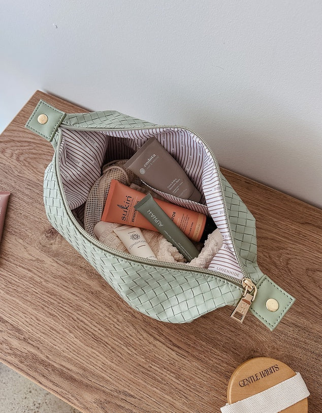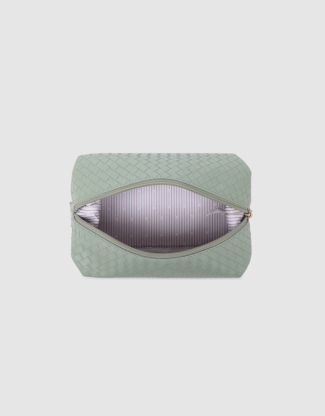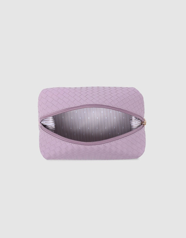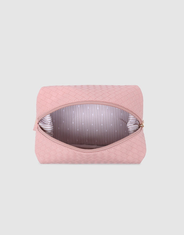The Lucinda Woven Cosmetic Case is a travel cosmetic bag designed to bring a touch of summer style to your everyday routine. Crafted from woven vegan leather and finished in colours that speak to the season, Lucinda Woven Pink is your go-to woven beauty case for summer travels and weekend escapes.
