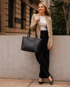 The Louenhide Malibu Laptop Tote Bag is the perfect blend of style and functionality. With accordion-style compartments, it fits up to a 16-inch laptop and keeps your essentials organized. The centre zip protects your laptop, while the front slip pocket offers easy access to your phone. Gold foiling adds a touch of elegance.