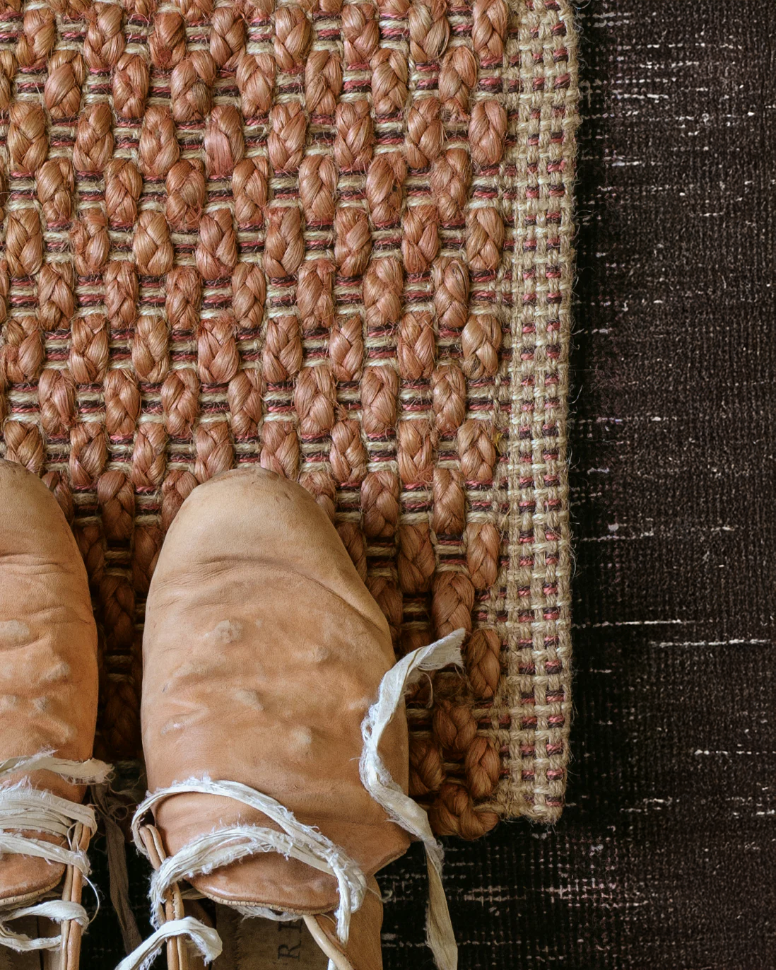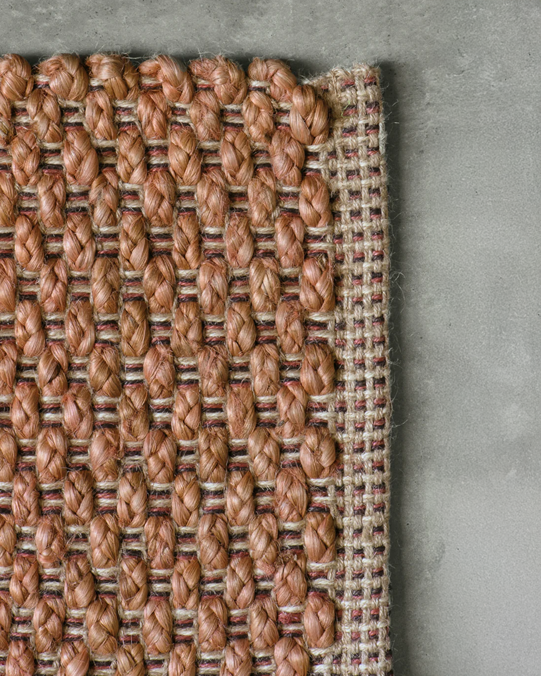 - Tappeto clay features a clay weft with a warp consisting of natural, oatmeal, grey and rose colours