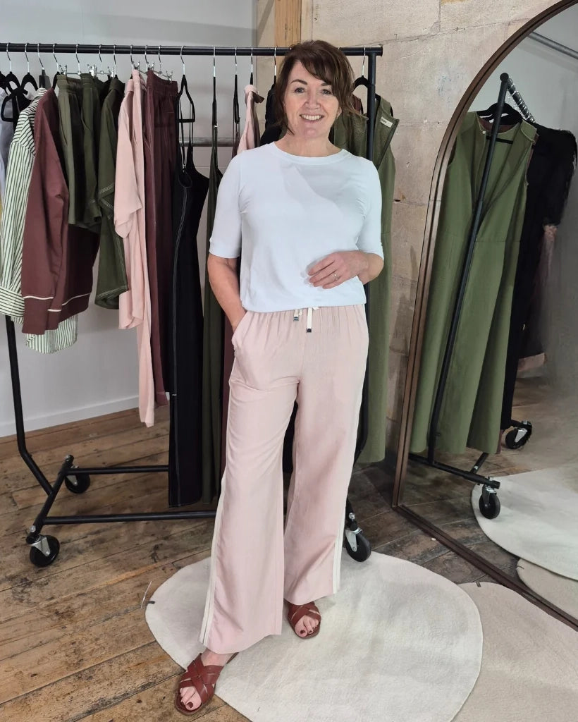 The perfect blend of style and comfort. Crafted from a lightweight, breathable fabric, these pants are designed to keep you cool and comfortable no matter the occasion. Featuring chic cream contrast stripes down each leg and stylish side splits at the hem, these pants bring a modern twist to a classic silhouette.