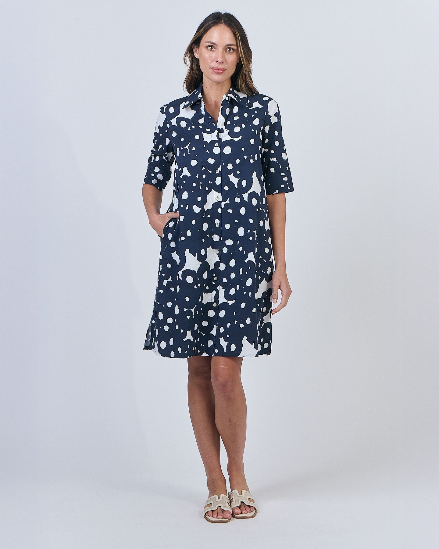 Simplicity never looked so stunning with this shirt dress. Designed with a sharp collar and elbow-length sleeves, this dress offers a sleek, structured silhouette. The back features a delicate pleat for a gentle flow, creating a balanced and flattering fit. Made from 100% linen.