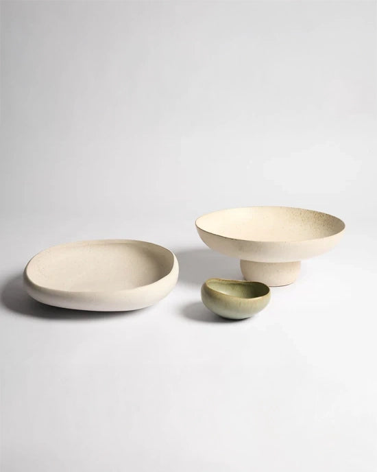 The Fort Collection brings a sense of ease to the table. Each piece is organically formed, celebrating soft, imperfect lines and the natural character of its finish. Designed with a quiet strength, the collection balances sculptural form with everyday function — pieces made to be lived with, shared, and enjoyed.
