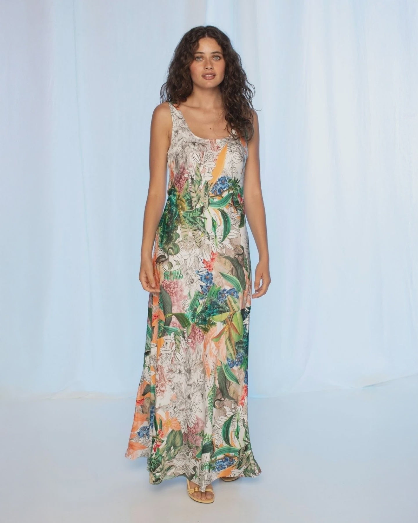 This sleeveless maxi features a flattering U-neckline and a relaxed silhouette that drapes beautifully over the body. Designed in a vibrant summer greenery print and made from lightweight fabric, it's breezy, colourful, and feels as good as it looks.