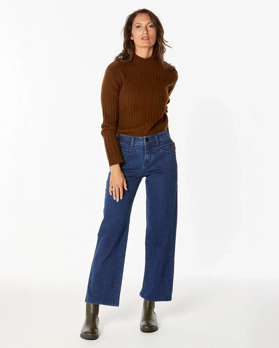 The Burnley Jean combines a high-rise fit with a wide leg for a flattering, relaxed silhouette. Made from 2-way stretch denim, these jeans offer comfort and movement, finished in a versatile mid-blue wash.