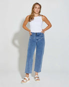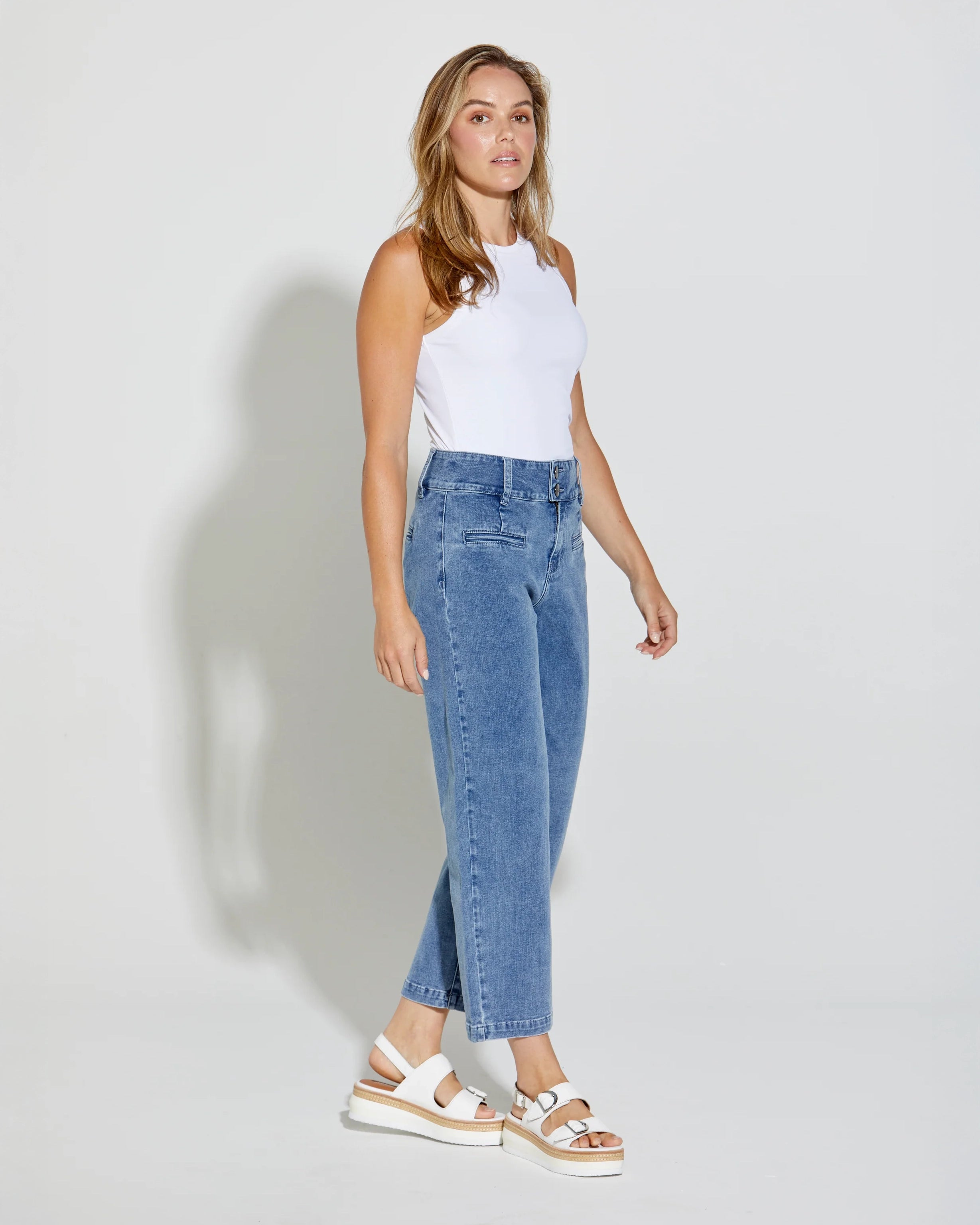 Wide leg ankle grazer jean providing maximum comfort and perfect for casual or dressed occasions.