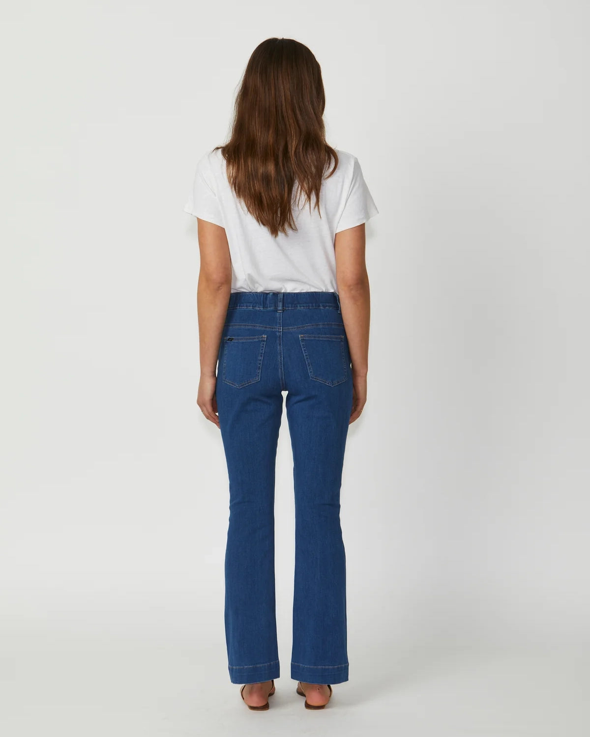- High-rise, mid-flare fit