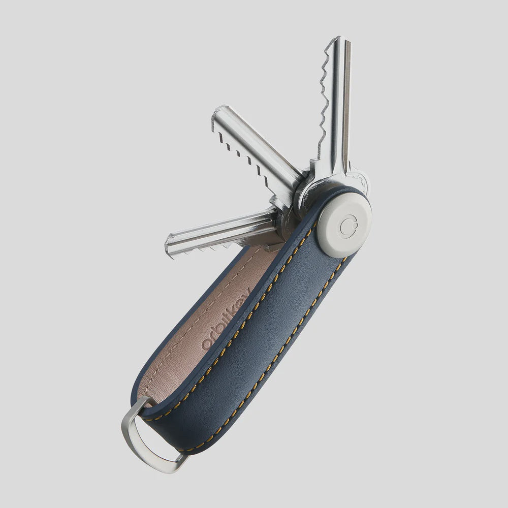 Orbitkey-Leather Key Organiser | Navy/Tan