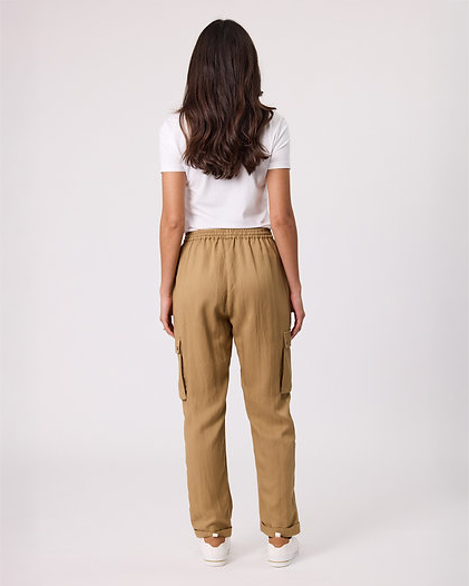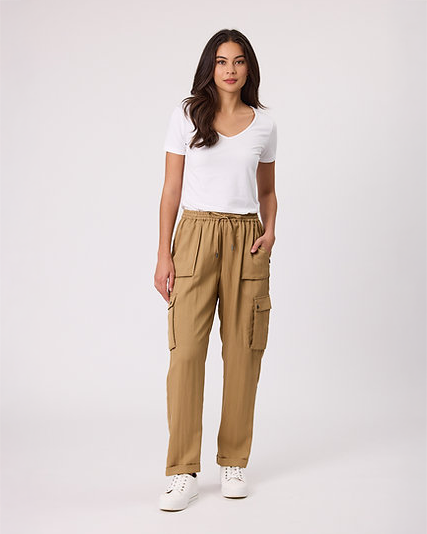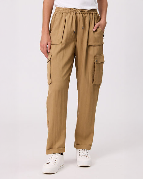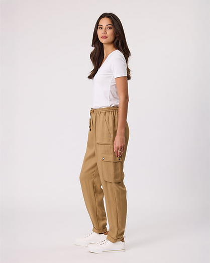 Full length elasticated waistband pant. Two side pockets and cargo pockets