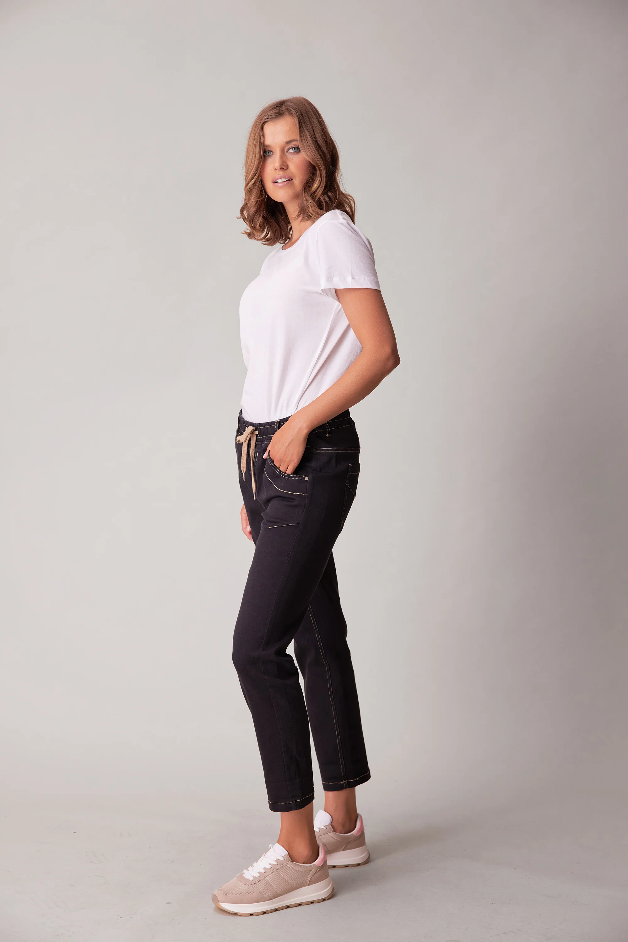 Lania the Label Boyfriend Jean is a casual jean with an elasticated waist and adjustable drawstring tie. Soft handle achieved by special garment wash.