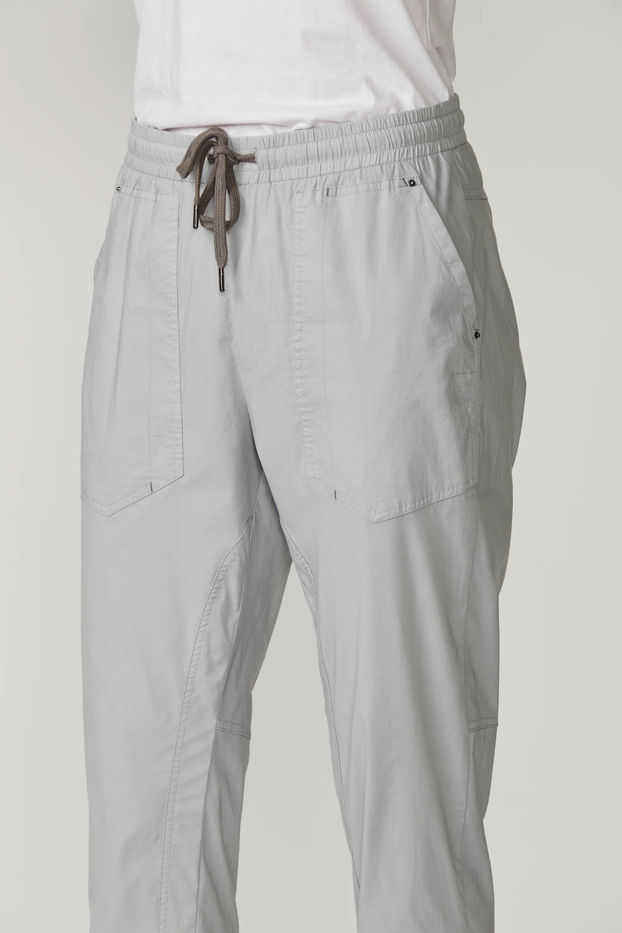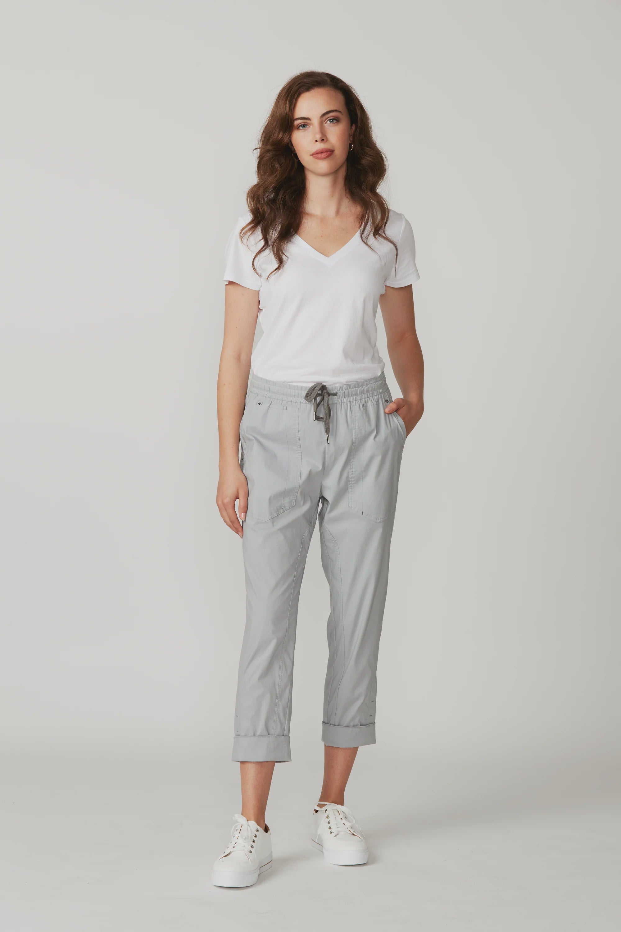 The Lania Port 7/8 pant features an elasticated waist with adjustable drawcord, front pocket with antique nickel hardware & relaxed leg with optional turn up cuff. These are the perfect lightweight cotton rich stretch pant for everyday.