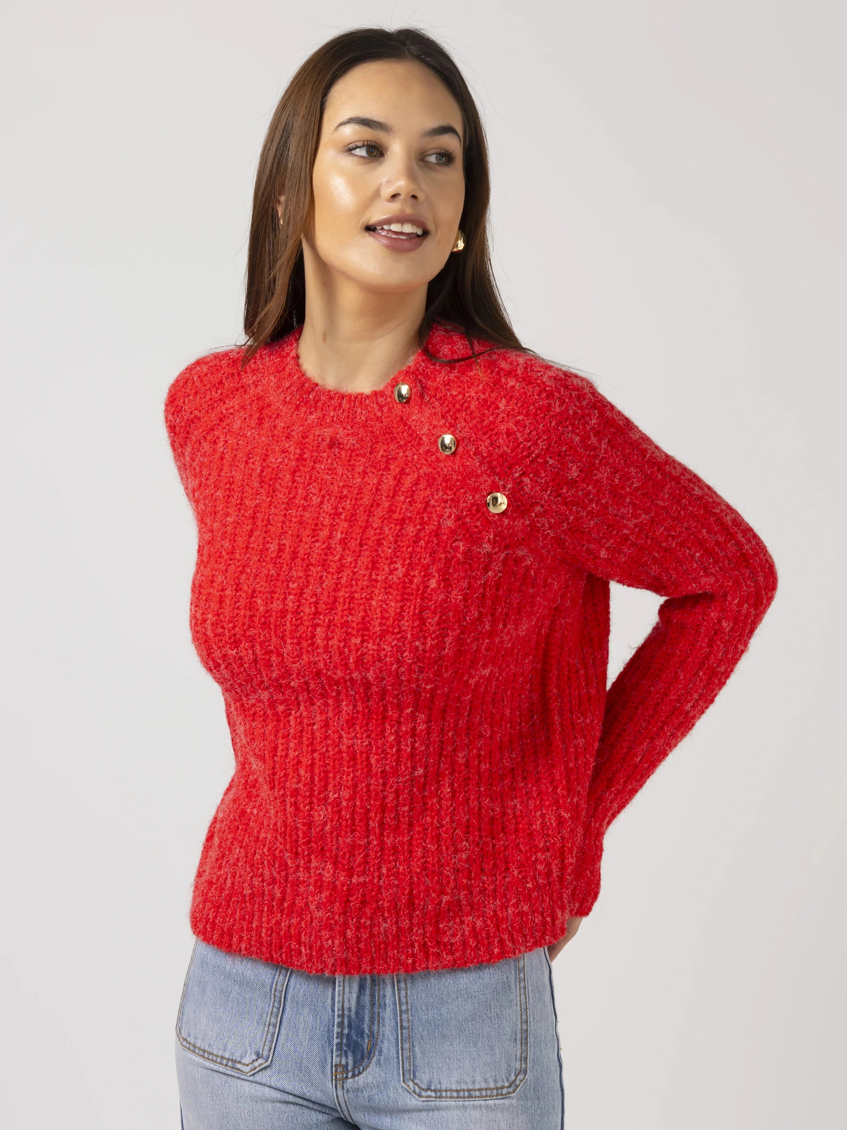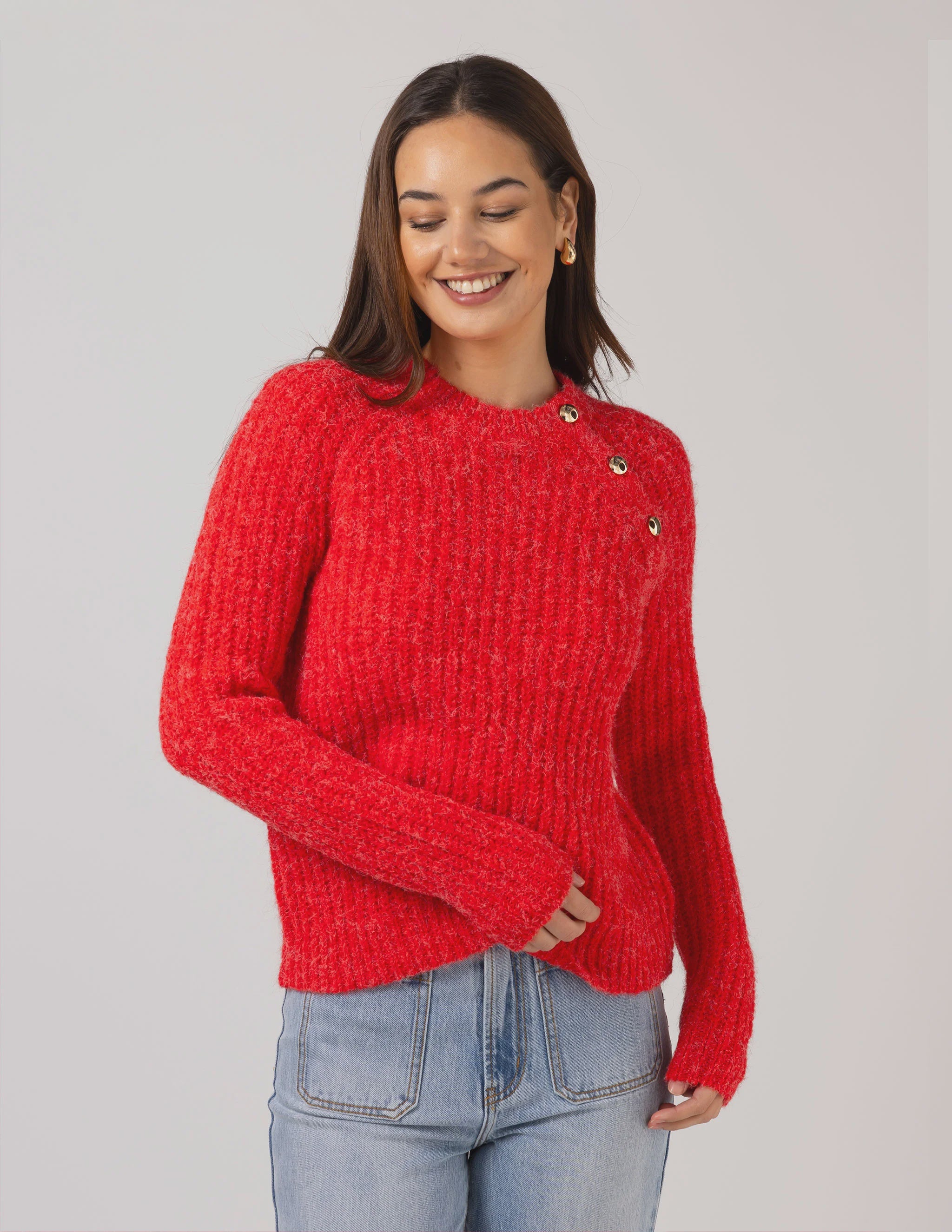 The Stella + Gemma Pascal Jumper is the perfect blend of warmth and style, featuring a chunky ribbed knit with a classic crew neck. Designed for effortless layering, its raglan sleeves and angled button placket with gold feature buttons add a modern touch. Cozy yet versatile, this knit is a must-have for any wardrobe.