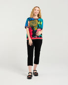 This effortlessly chic top maintains its relaxed silhouette and signature elastic trim detailing at the neckline, cuffs, and hemline, offering a flattering yet laid-back fit. The look is elevated with a black base print featuring abstract leaf motifs, bringing a modern, nature-inspired edge to the design.