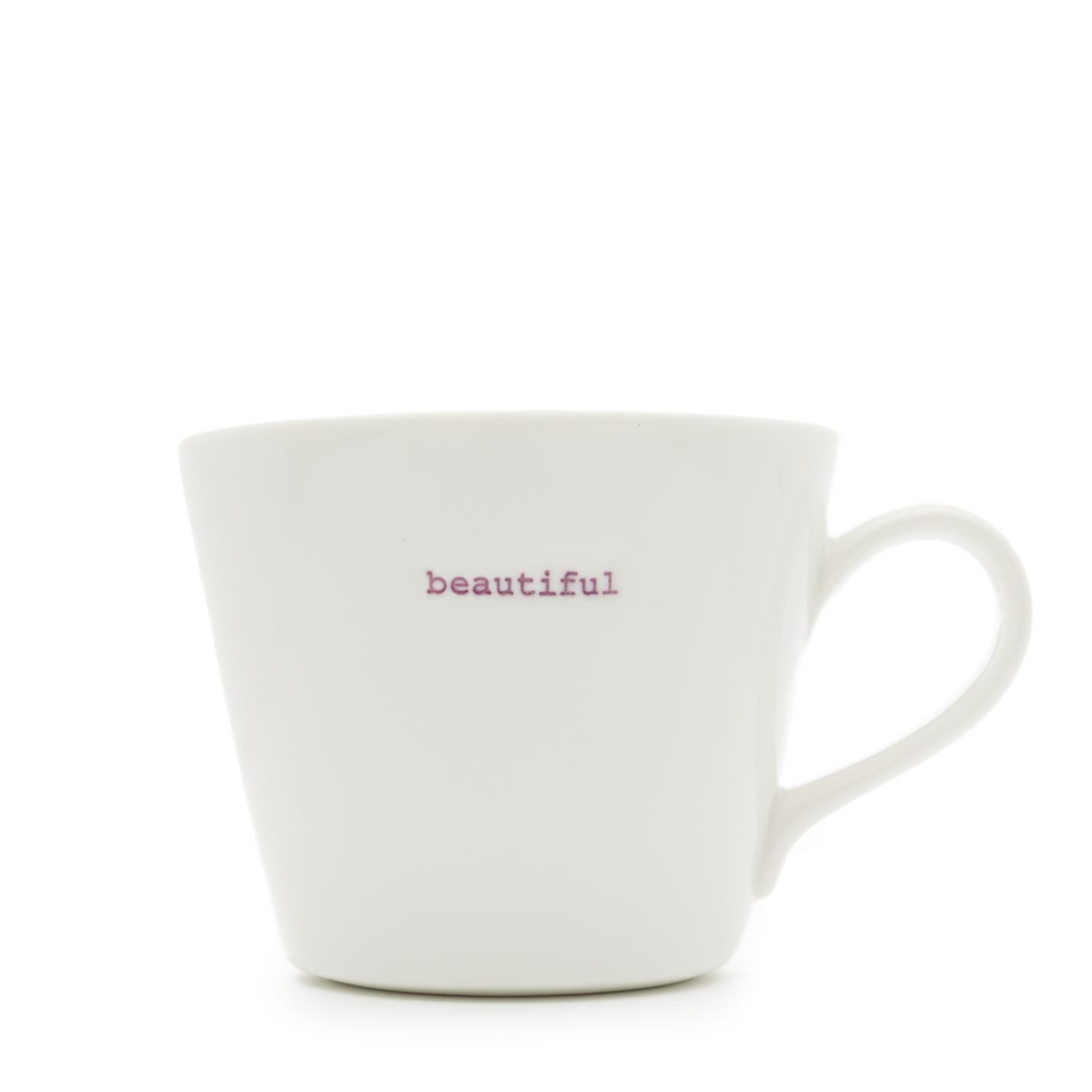 Designed by Keith Brymer Jones to be practical in the home and pleasing to the eye, this simple yet stylish bucket mug is perfectly formed from super white porcelain and hand stamped with specific words. The mugs’ beautiful, satisfyingly cosy shape contrasts with its clean, subtle exterior, giving the mug a country feel but with urban elegance.