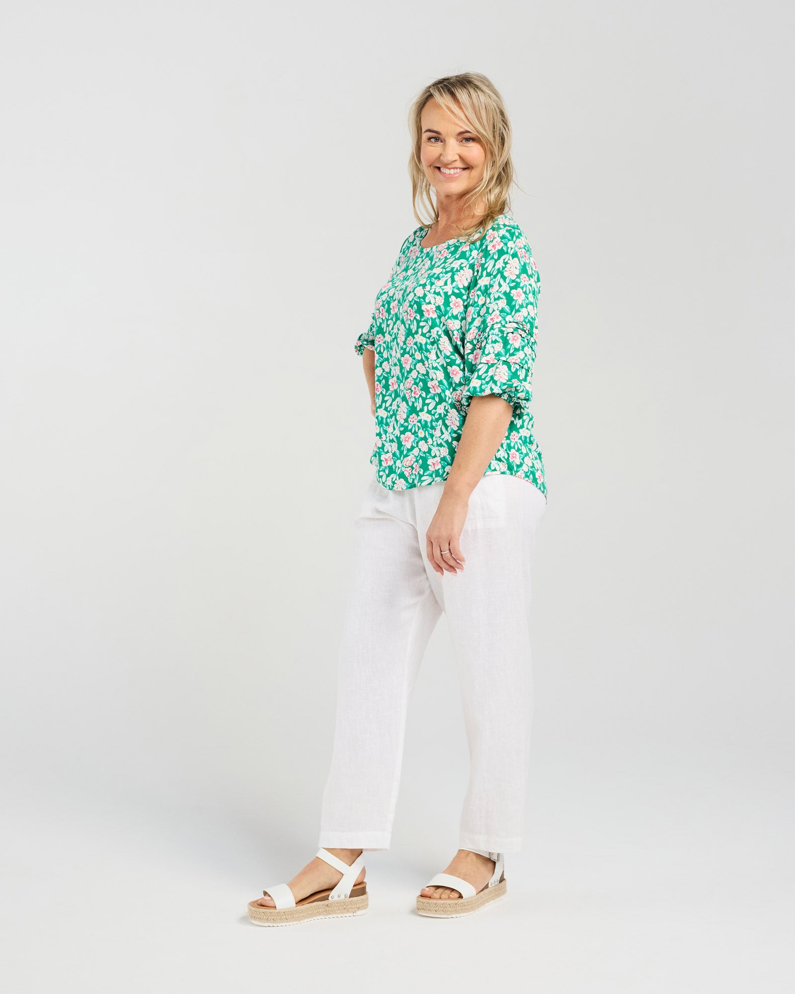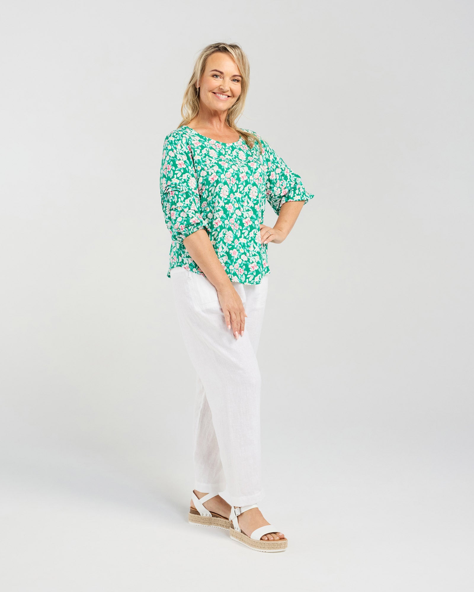 Blackstone's Floral Pintuck Sleeve Top, made from 100% rayon, offers a luxuriously smooth and lightweight feel, making it ideal for any summer occasion. The ditsy floral design and Pintuck Sleeve adds a interest and makes this piece perfect for any summer outfit. Pair it with your favourite jeans for a laid-back look or style it with tailored trousers for a refined ensemble. This versatile top is a must-have for your wardrobe.