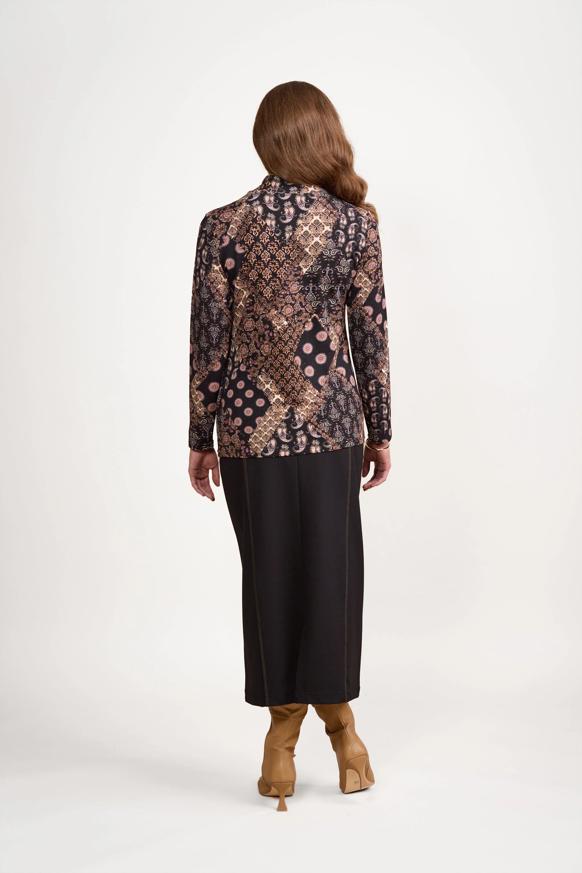 Vassalli Long Sleeve Printed Knit Top with High Neck