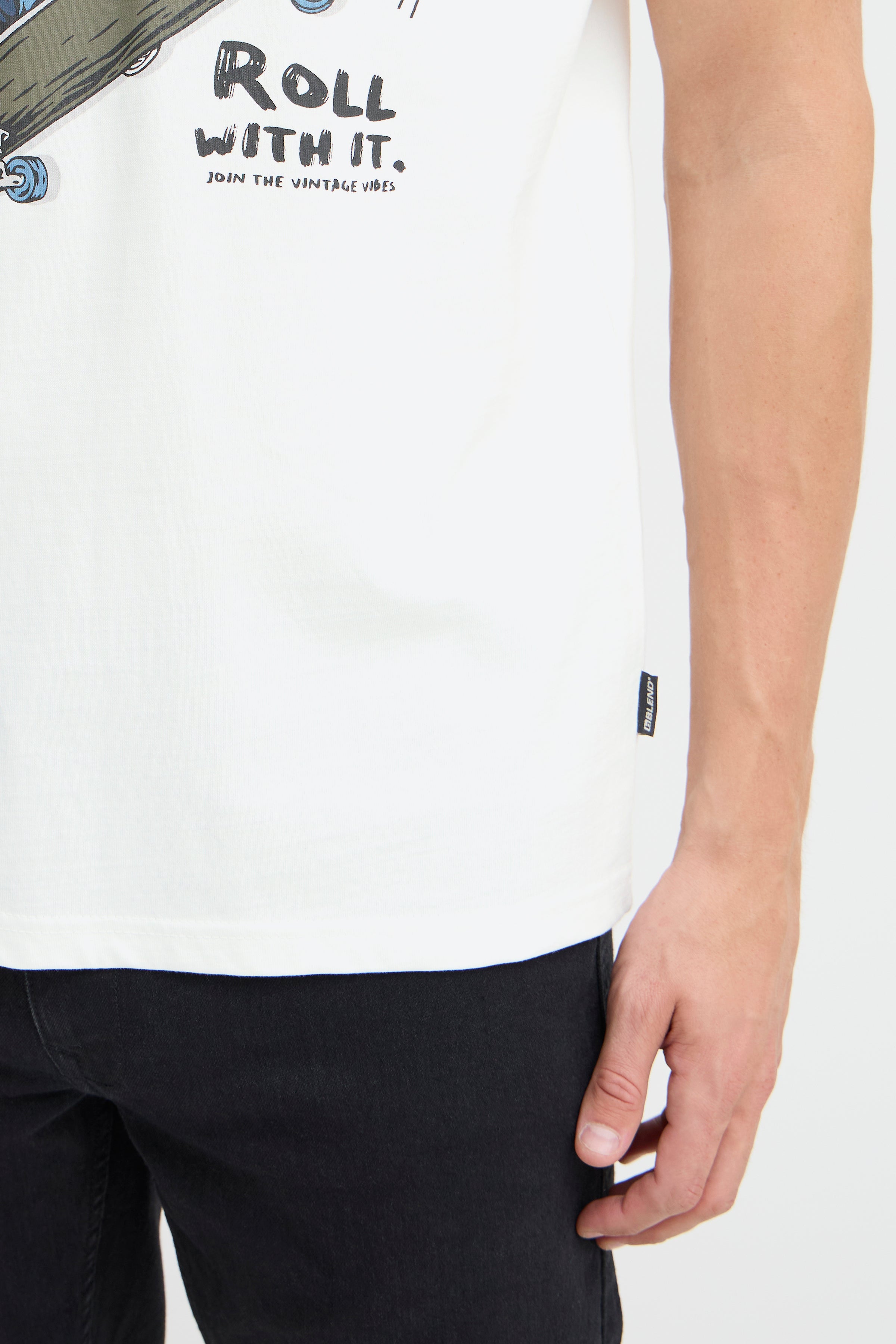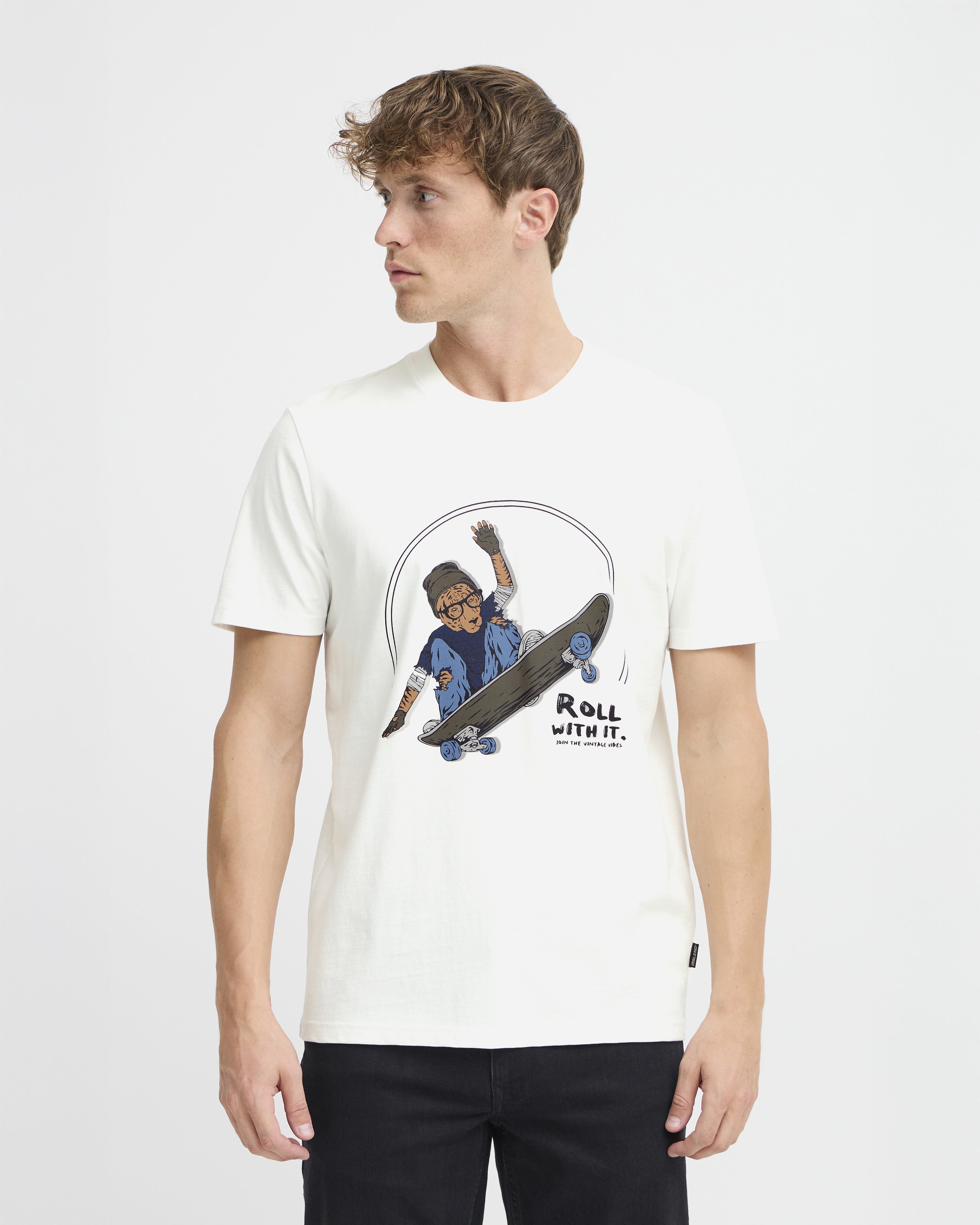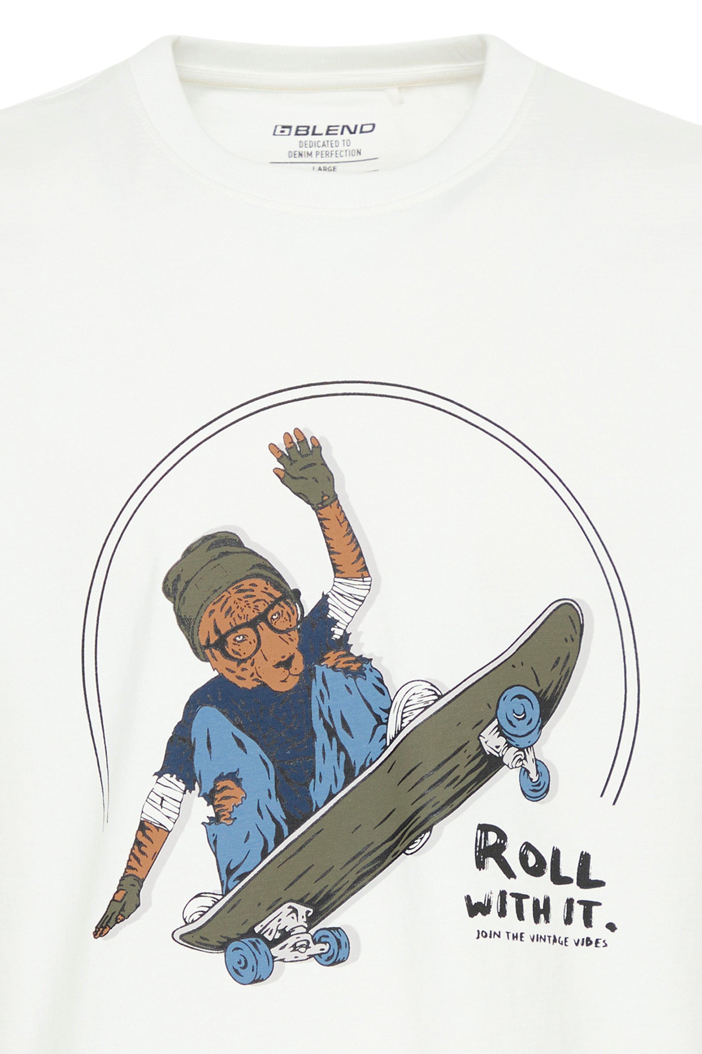 Bring some serious attitude to your wardrobe with the Blend He Javor Tee in White Tiger. Made for those who like their casual wear with a side of personality, this short-sleeve tee features a bold front graphic of a skateboarding tiger.