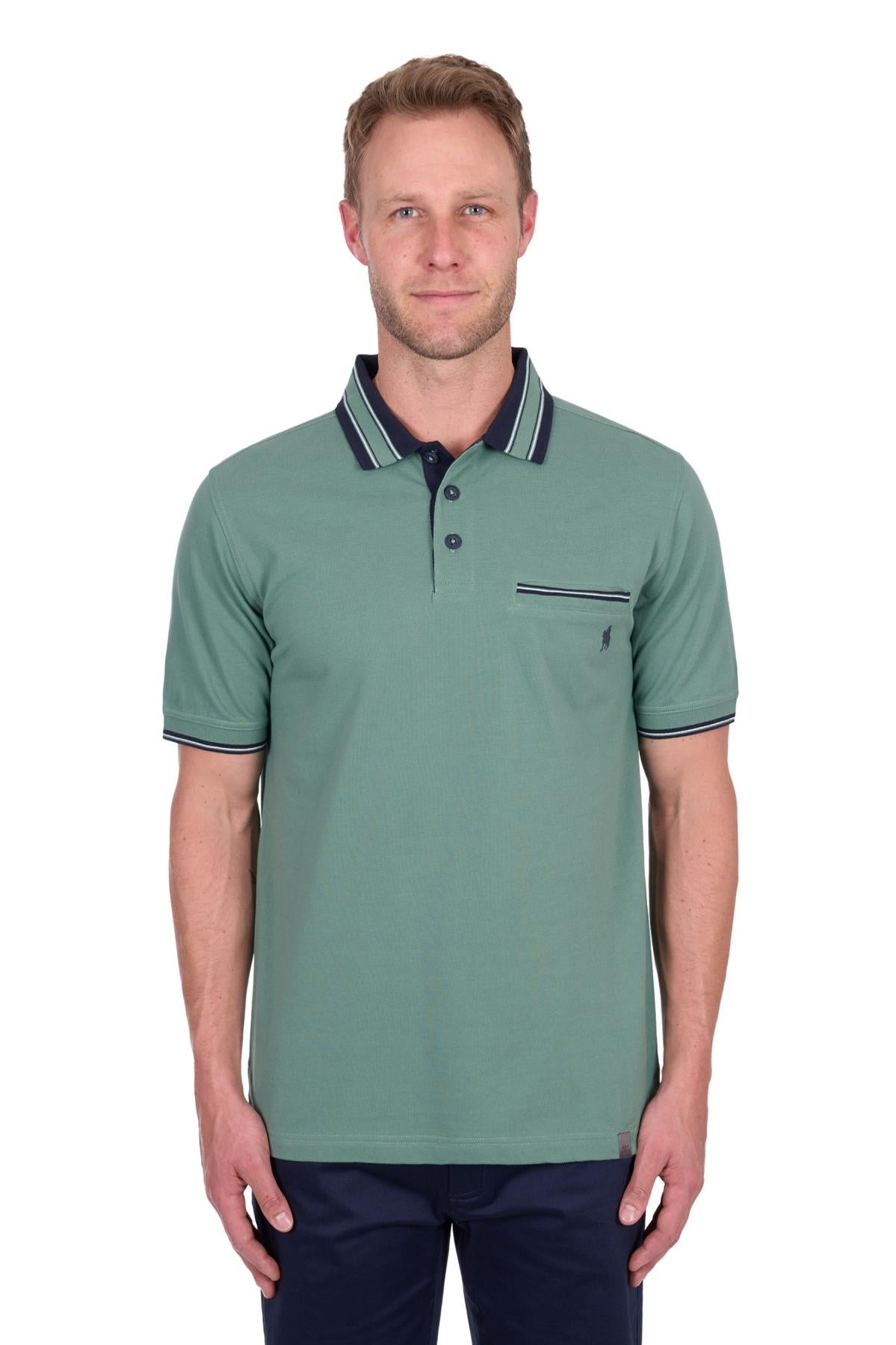 Tailored fit polo with a chest pocket, rib collar, cuffs and pocket with contrast stripe tipping. Made from premium quality 100% cotton, with a contrast button thread colour and horseman embroidery on the chest.