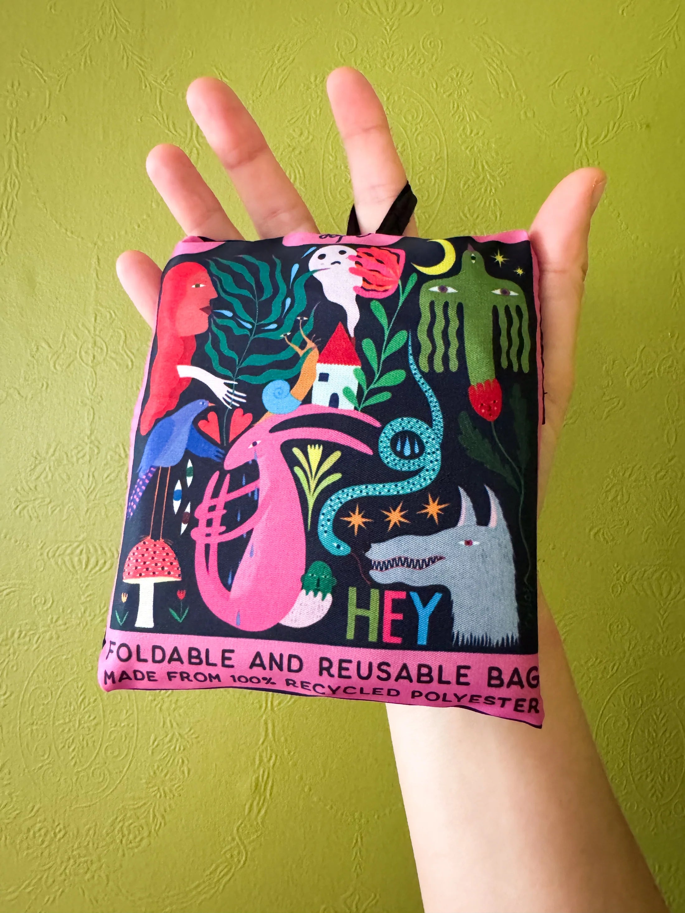 Eco-friendly, reusable and foldable bags by NZ artist Studio Soph. Made from recycled bottles, and featuring Studio Soph's unique design these are the perfect size to throw in your handbag while looking oh so nice!