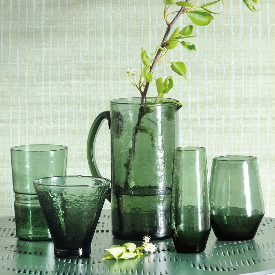 Individually handmade from recycled glass with an organic hammered finish, this glassware is the perfect addition to add interest and fun to your table. The handmade quality really shines through with no two pieces being the same. You’ll find charming, slight irregularities and small bubbles that just reflect the artisan’s bespoke touch and are not perceived as production faults.