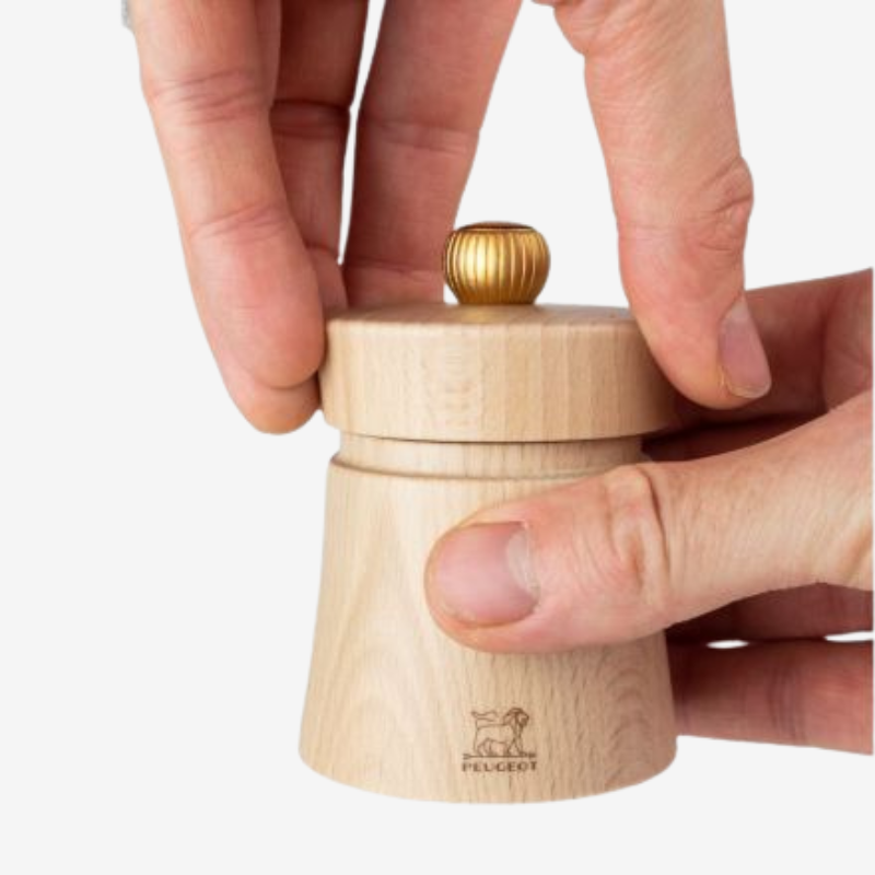 The Baya manual salt mill, 8cm high, comes in a natural wood finish. Discover beauty and simplicity in the service of practicality with the Peugeot Baya salt mill.