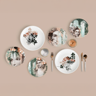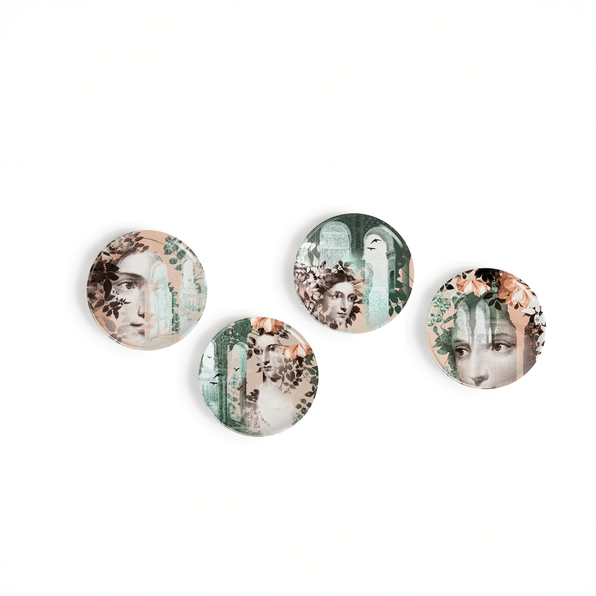 This set of four small plates is inspired by the floral and architectural elements of the Alhambra Palace in Granada, Spain.