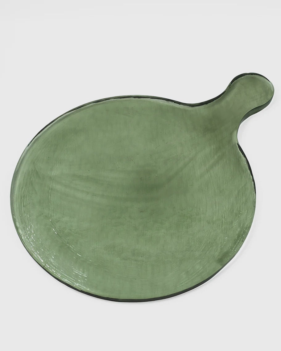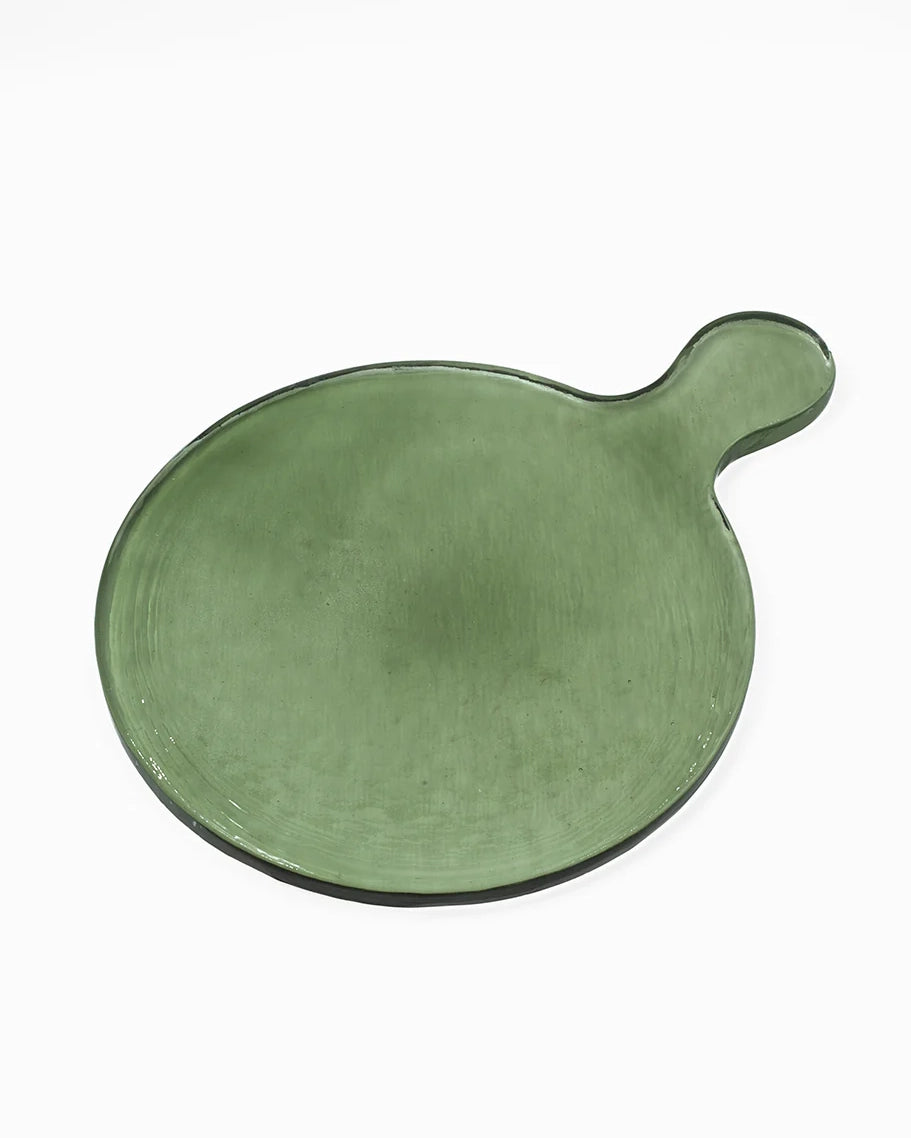 Make your culinary creations pop by presenting them on our hammered, recycled round glass serving boards. Available in two sizes, these are ideal for serving up cheese platters or cakes upon a decadent base of coloured glass.