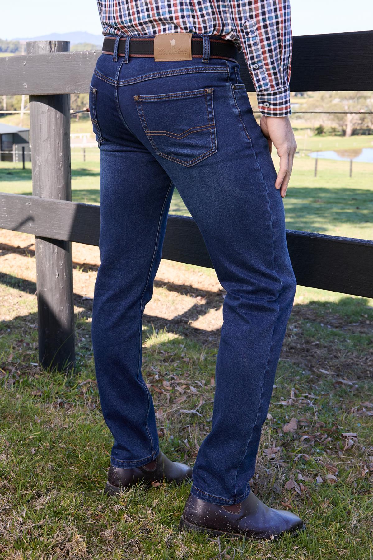 This Thomas Cook thermal comfort waist jean is designed for warmth and durability, featuring a brushed underside for thermal insulation and stretch fabric for ease of movement. With deep front pockets, reinforced stitching, and classic horseman embroidery, it's a staple for everyday wear.