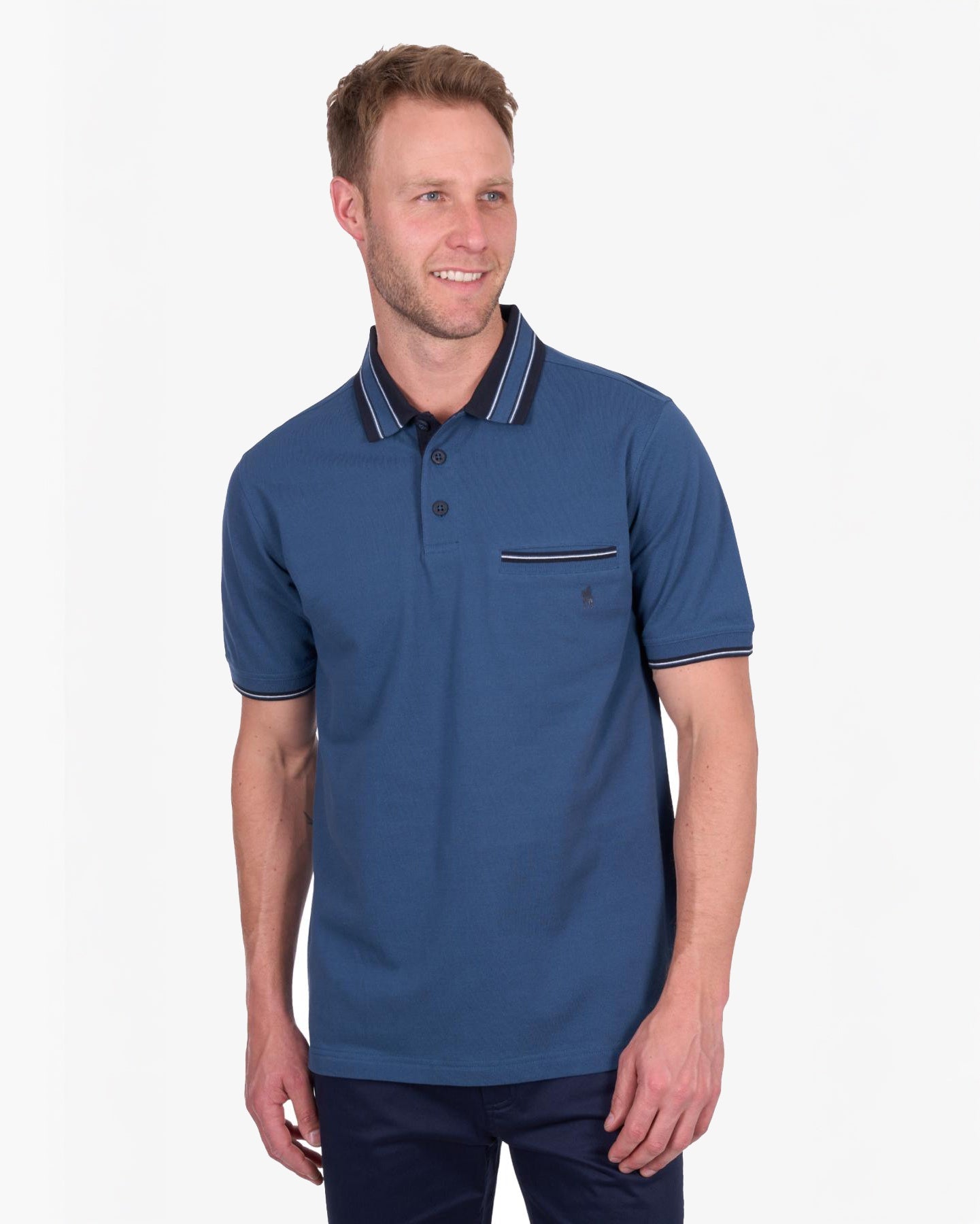 Tailored fit polo with a chest pocket, rib collar, cuffs and pocket with contrast stripe tipping. Made from premium quality 100% cotton, with a contrast button thread colour and horseman embroidery on the chest.