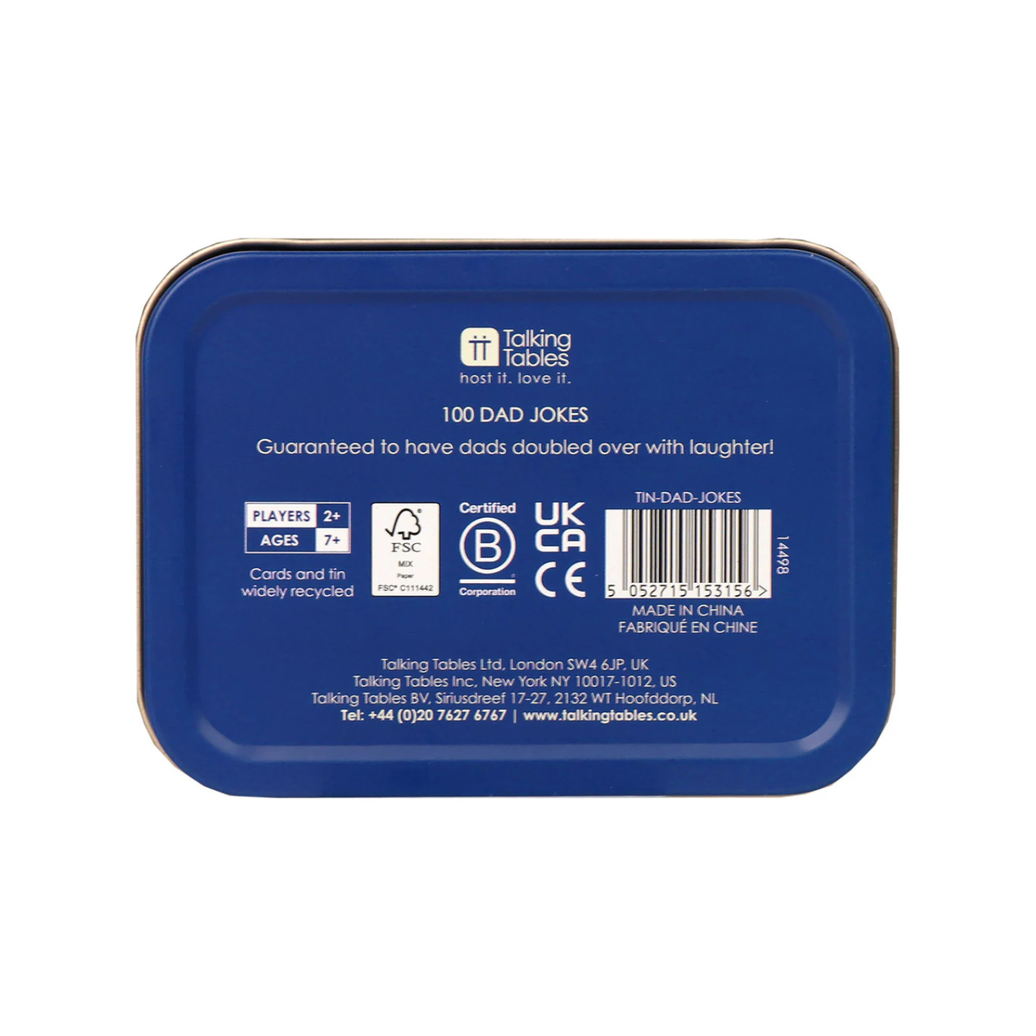 Often witty, childish, cheesy and occasionally not that funny, but one thing is for sure, they always provide great entertainment. Dad jokes are usually great points of discussion at the table and each tin includes 100 jokes to provide enough content to last throughout a meal.