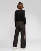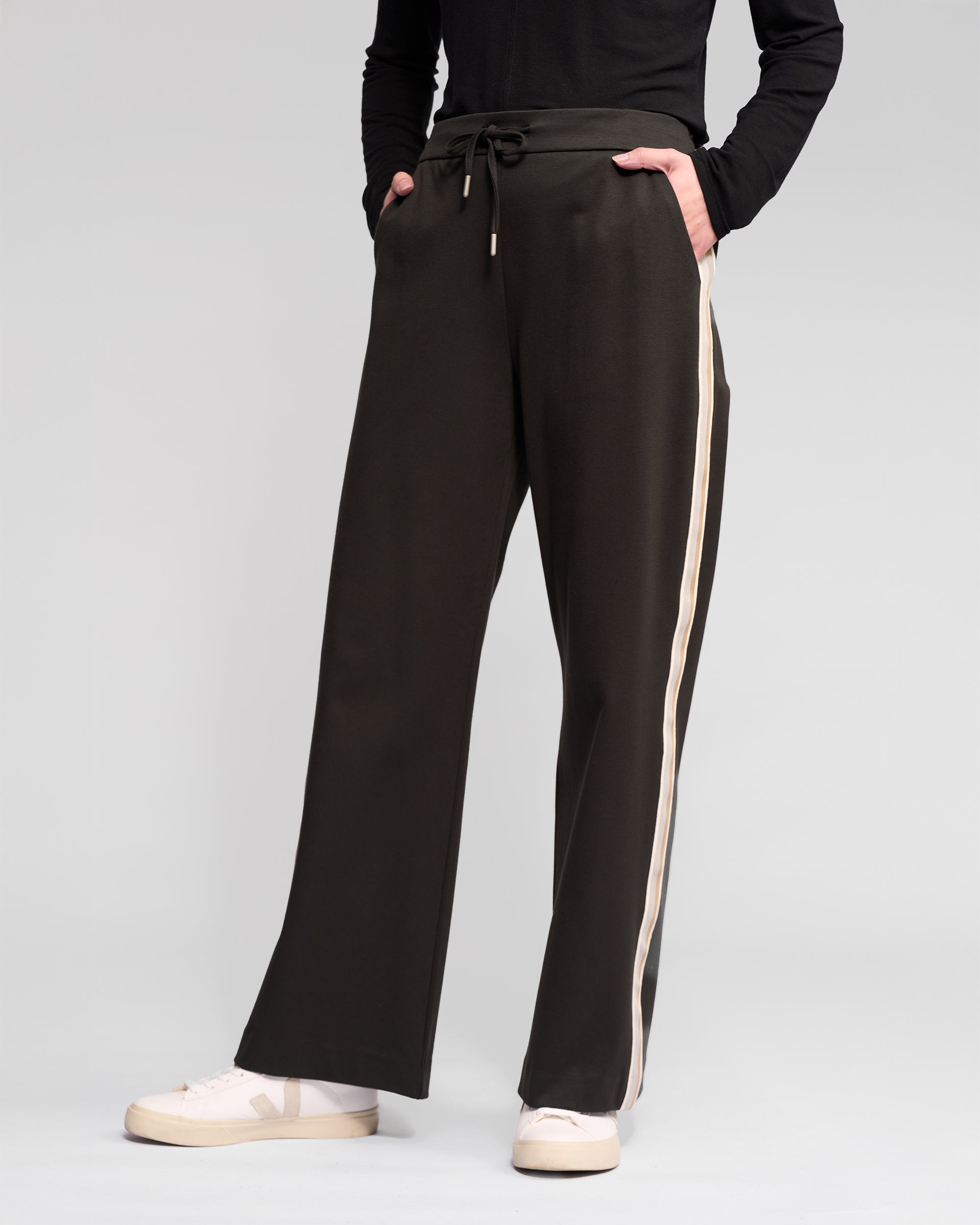 Wide-leg full-length track pant in our Dark Hunter colour — a deep dark green with contrast side stripe detailing. Designed in a comfortable stretch fabric, this style features an easy elasticated waist with adjustable drawstring for everyday wear. A relaxed yet polished take on a classic track pant, complete the set with the matching Weekend Knit Jacket.