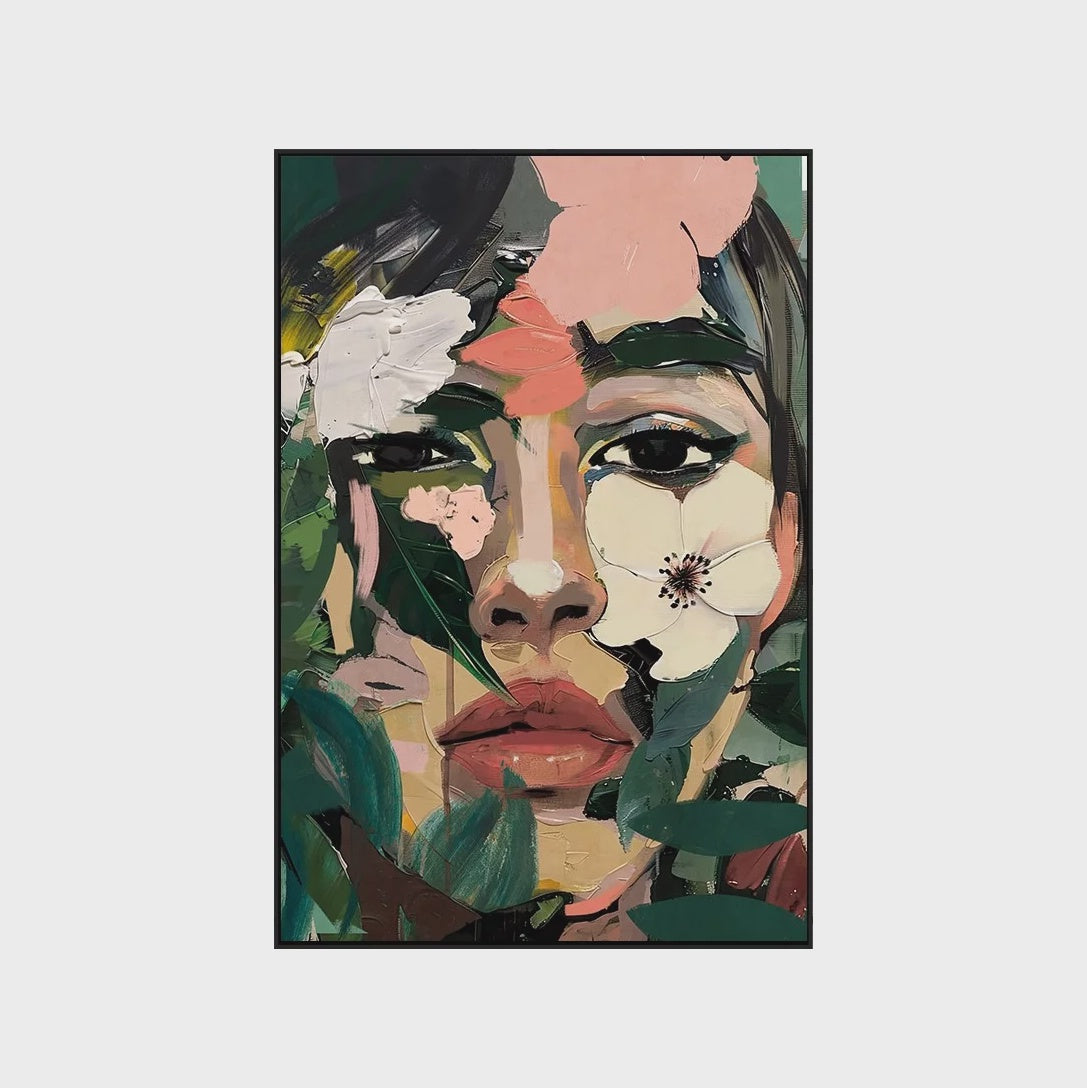 Be captivated by the Blooming Soul Framed Canvas Wall Art, featuring a face covered with flowers, it creates a whimsical and calming atmosphere. The detailed facial features, warm tones and textures add a modern artistic twist of the beauty of nature to your space.