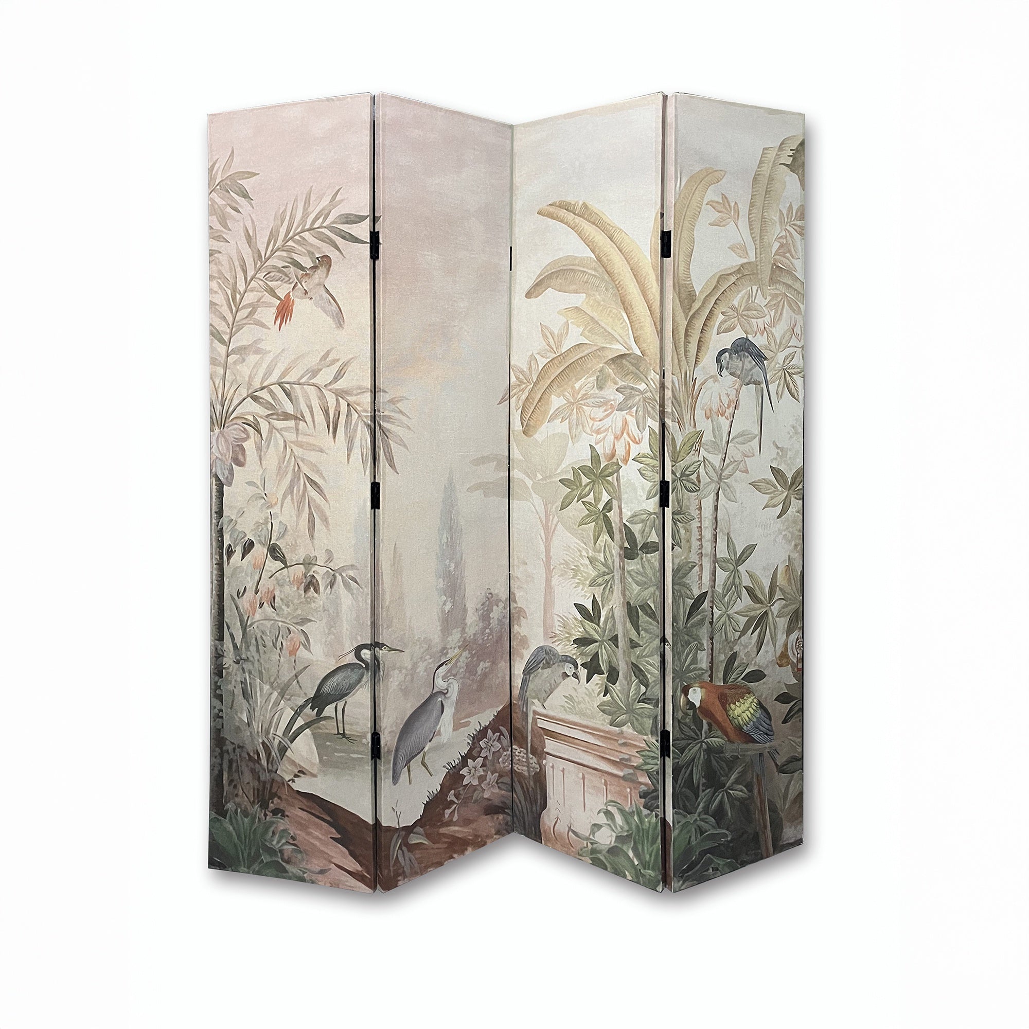 Screen/Wall Art Panel | Parrots/Crane Garden