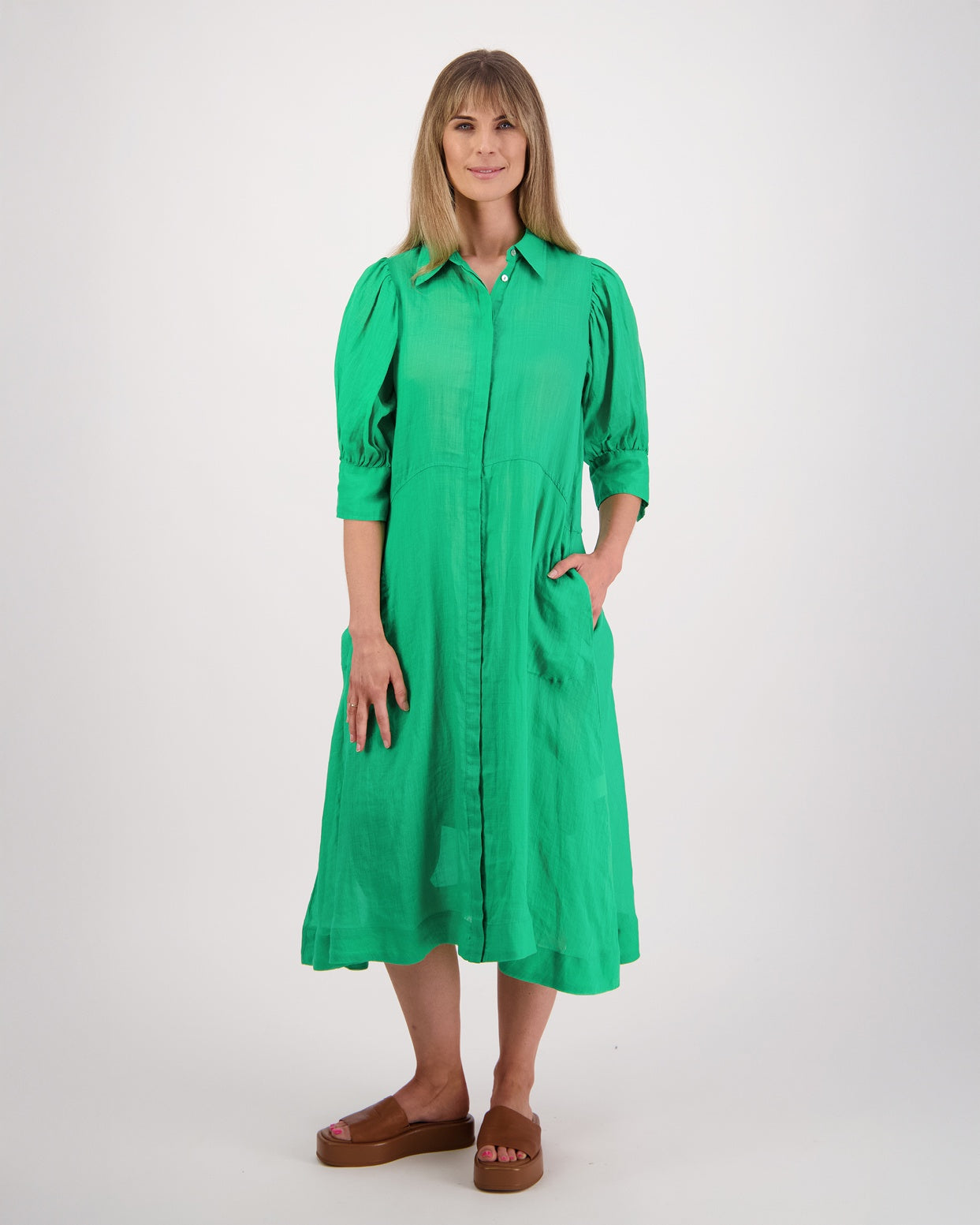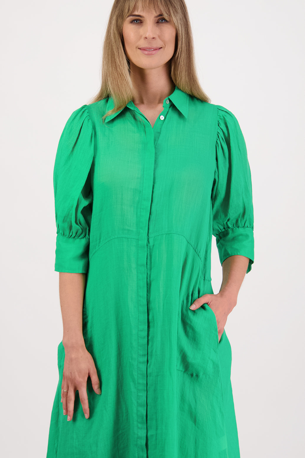 Meet Christine, your new best friend! She's a laid-back, midi-length shirt dress featuring pleated shoulder details. Crafted from luxurious Ramie fabric, Christine's versatility shines as an easy to layer trans-seasonal garment.