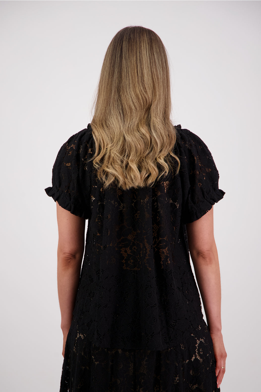A classic black lace top with comfortable elasticated neck and sleeves with signature ruffles. Versatile to wear with any look making Serenity the perfect top that will the one that you reach for everyday.