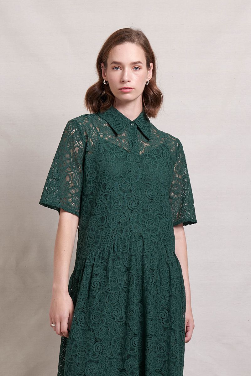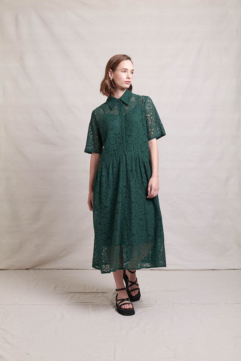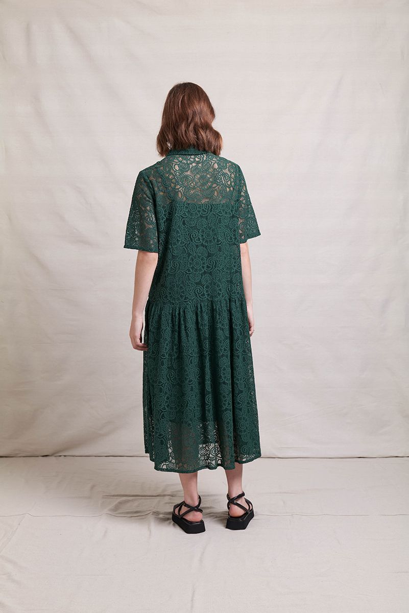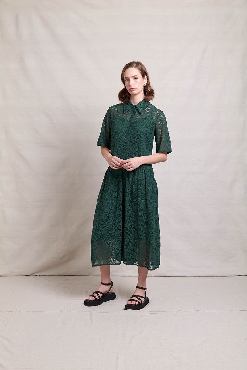 The Twin Peaks Dress by Neris is an update on a favourite style. Crafted from a super soft lace, the dress does up the front with concealed buttons, the skirt is dropped waist and it comes with a self-coloured slip.