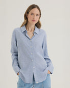 The Mornington Shirt is a refined take on the classic striped button-up. Crafted from a premium linen-viscose blend, it offers a soft, breathable feel and a naturally relaxed fit. Yarn-dyed vertical stripes create subtle length for a more flattering silhouette, while the curved hem and back yoke with an inverted pleat allow for extra movement and comfort across the shoulders.