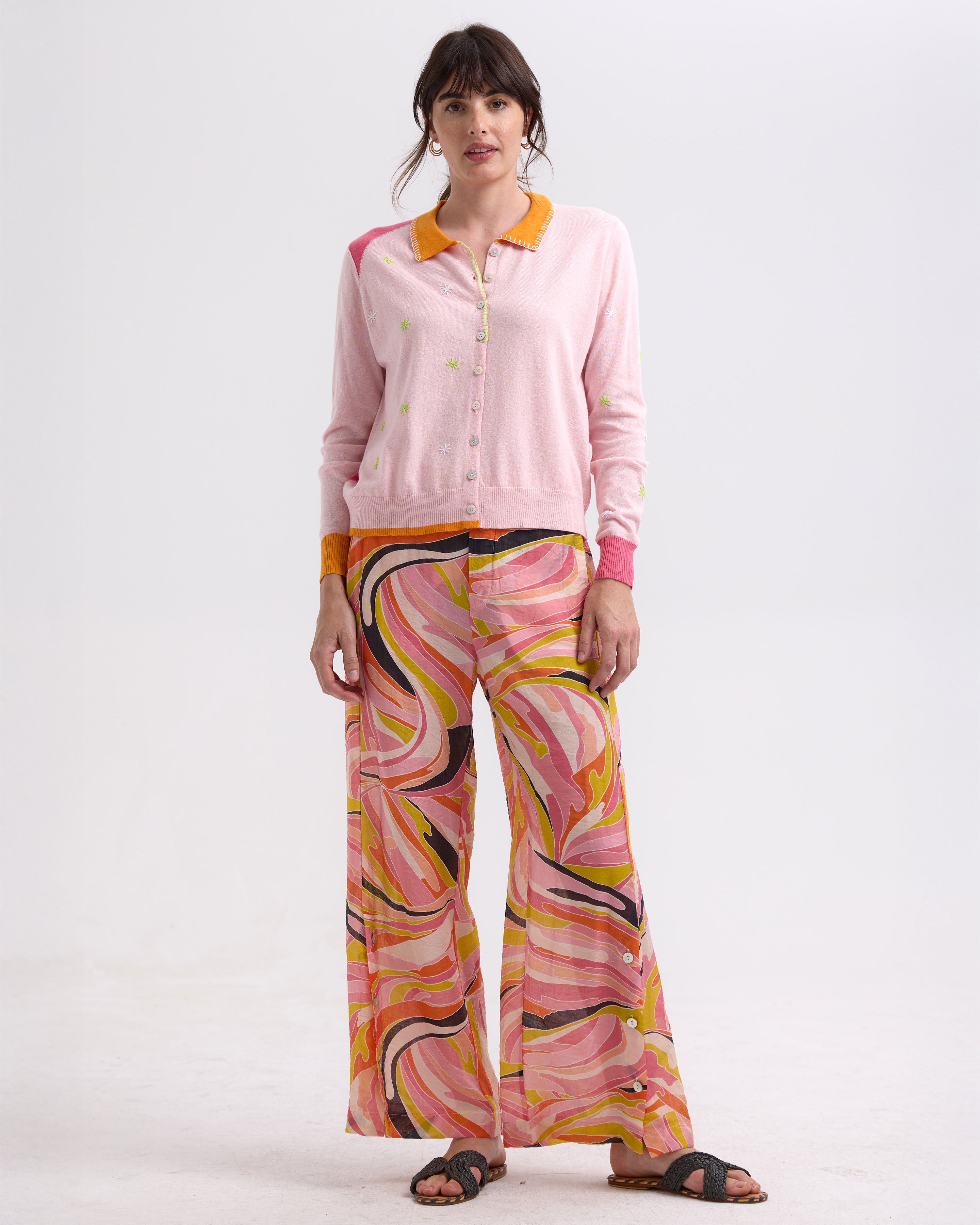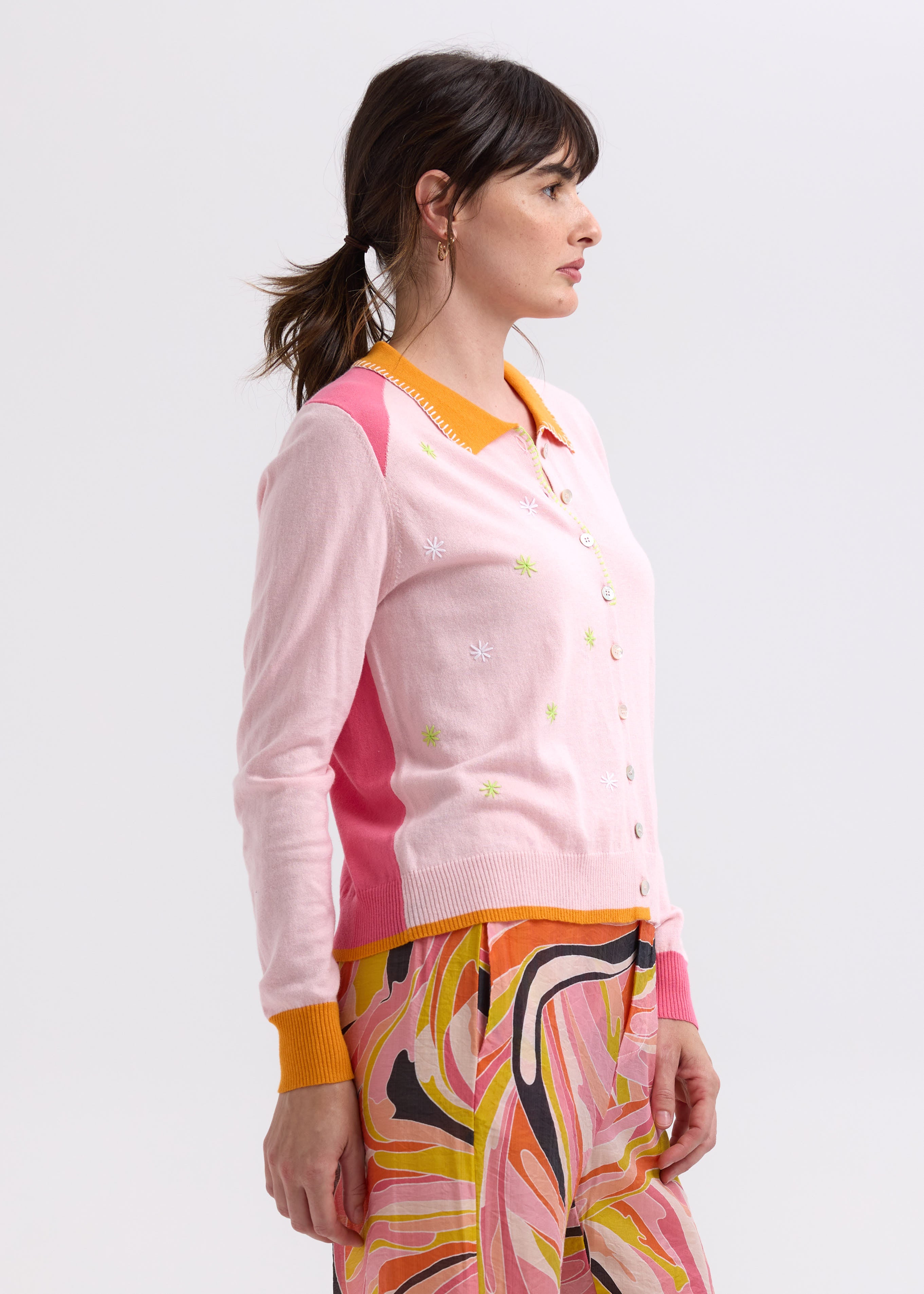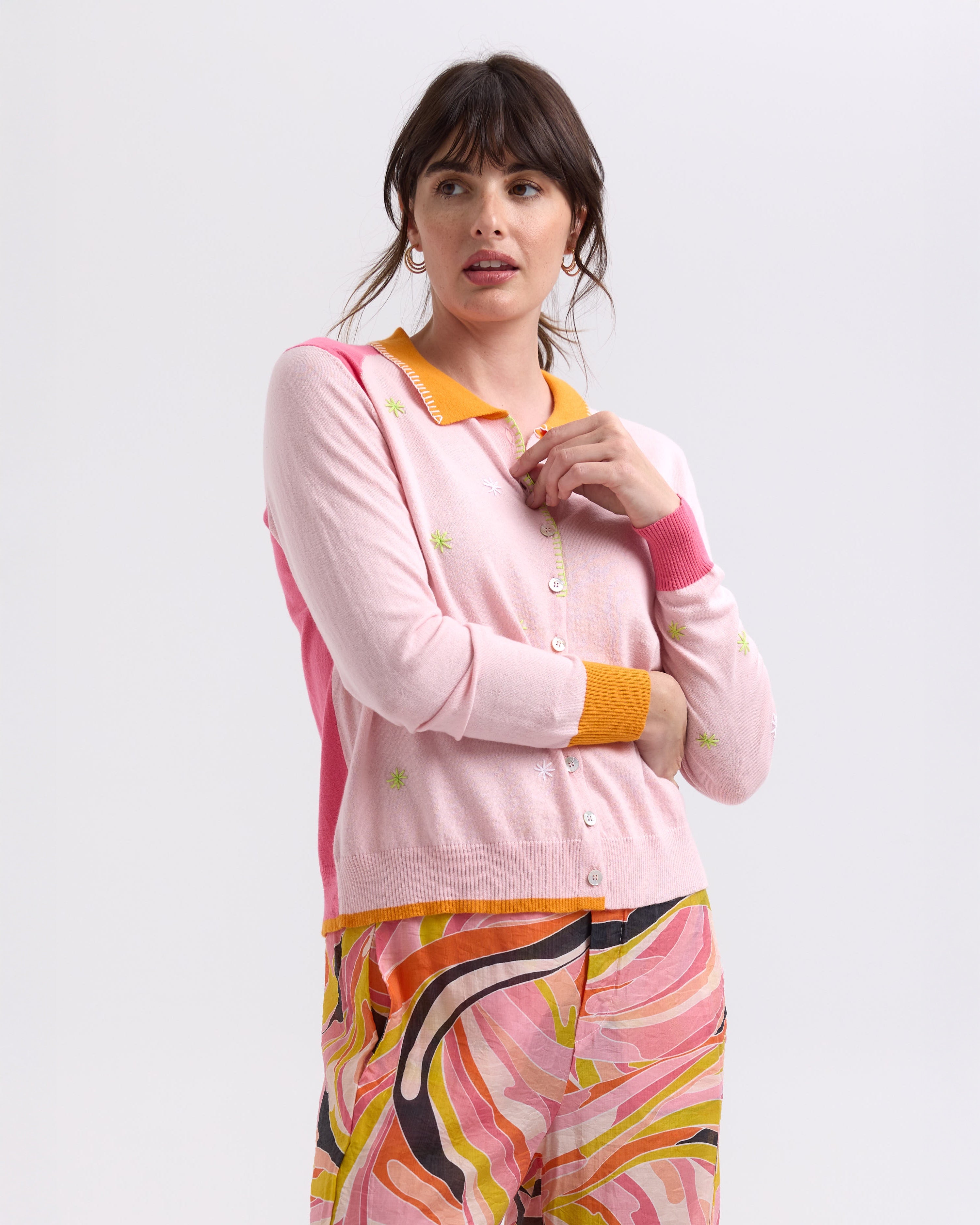 Add a playful pop of personality to your wardrobe with the Blossoms Hand Work Cardigan by Zaket & Plover. Crafted in a soft knit, this button-up cardigan is brought to life with delicate hand-embroidered floral motifs scattered across the front. The fine-gauge knit keeps it lightweight and perfect for layering, whether you're dressing up denim or adding flair to your workwear.