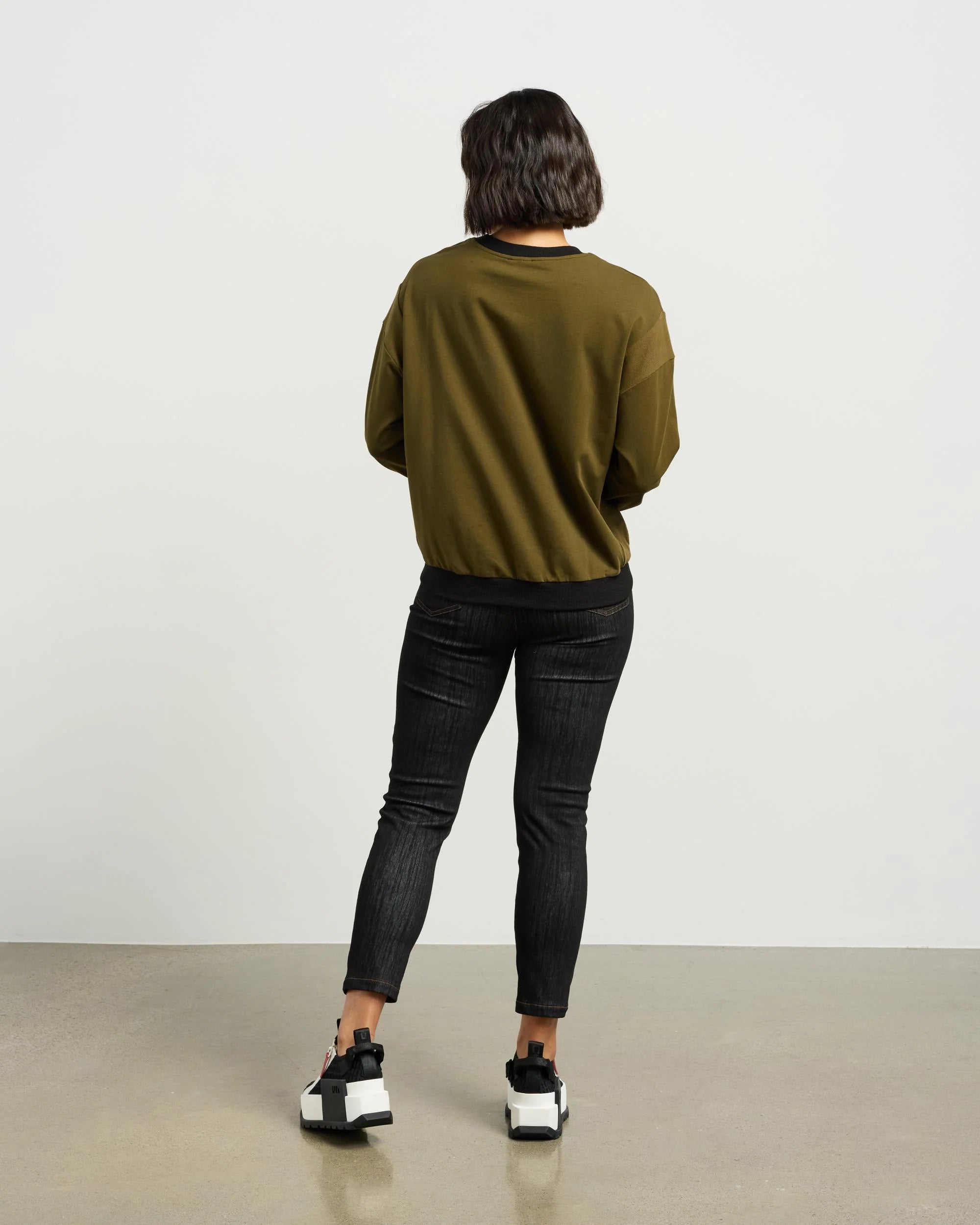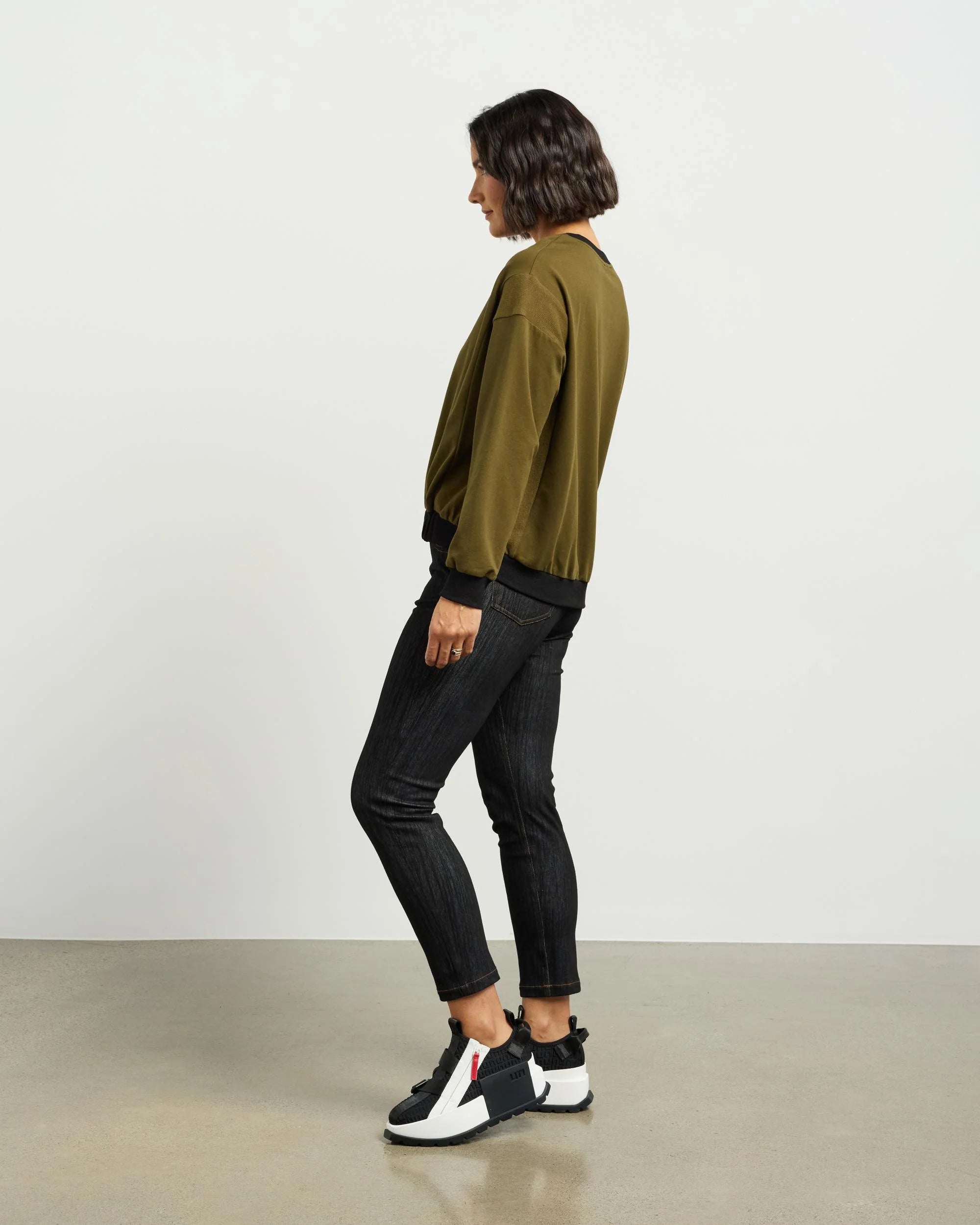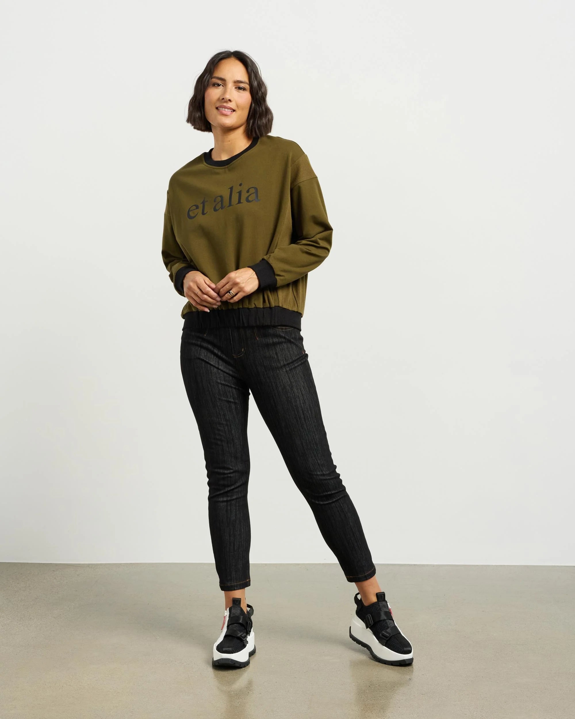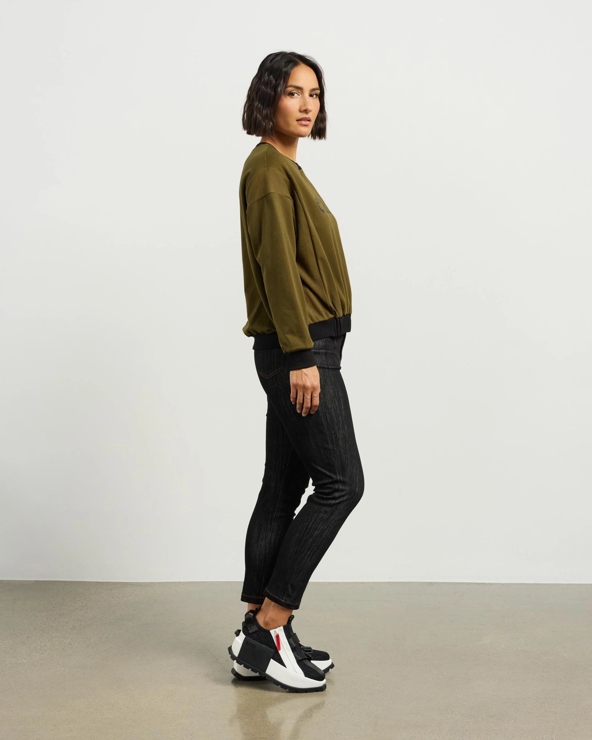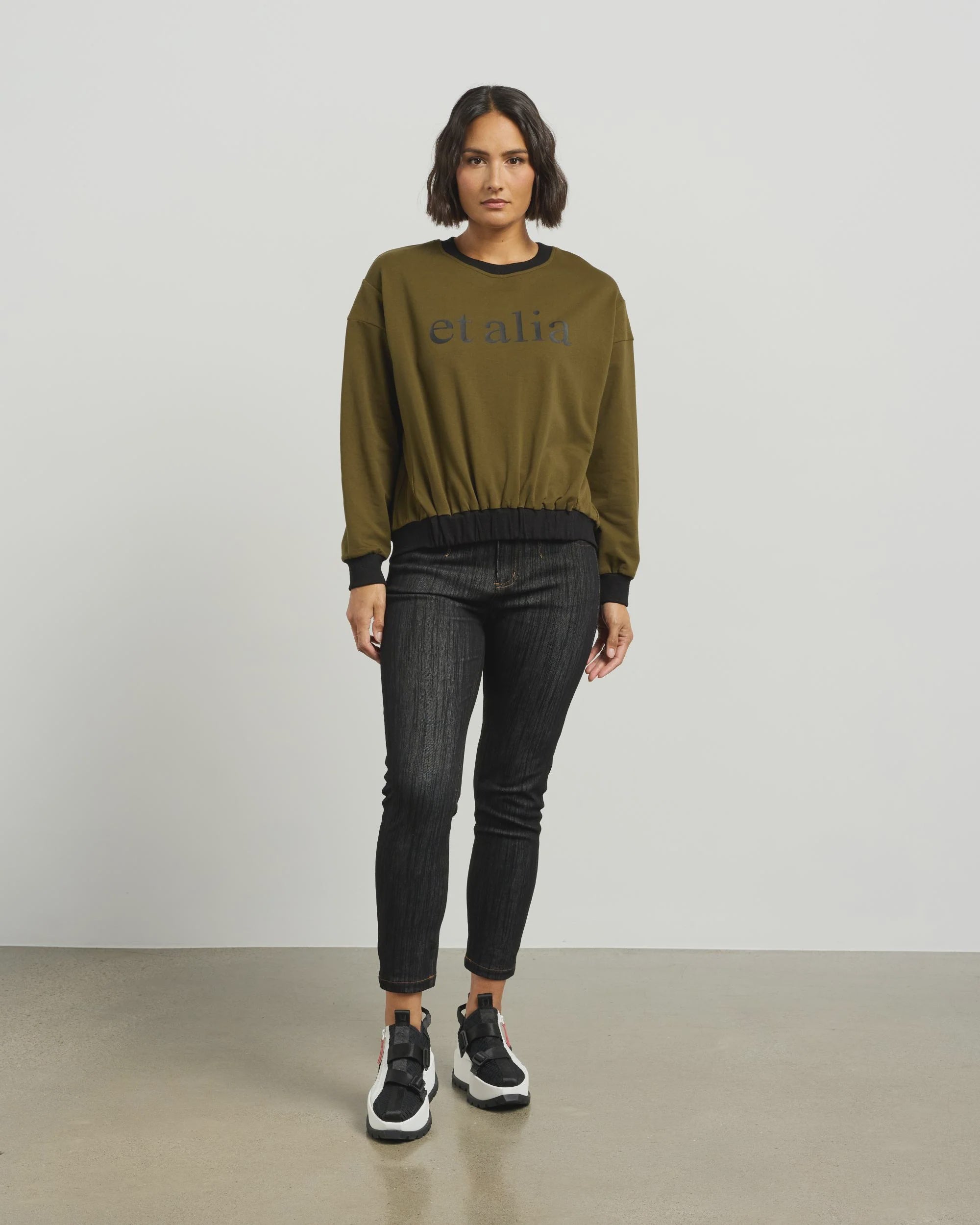 A modern update on a classic sweat. The Boston features contrast rib trim and subtle gathers at the hem for soft shape. A tonal logo print on the front adds a minimalist branded touch.